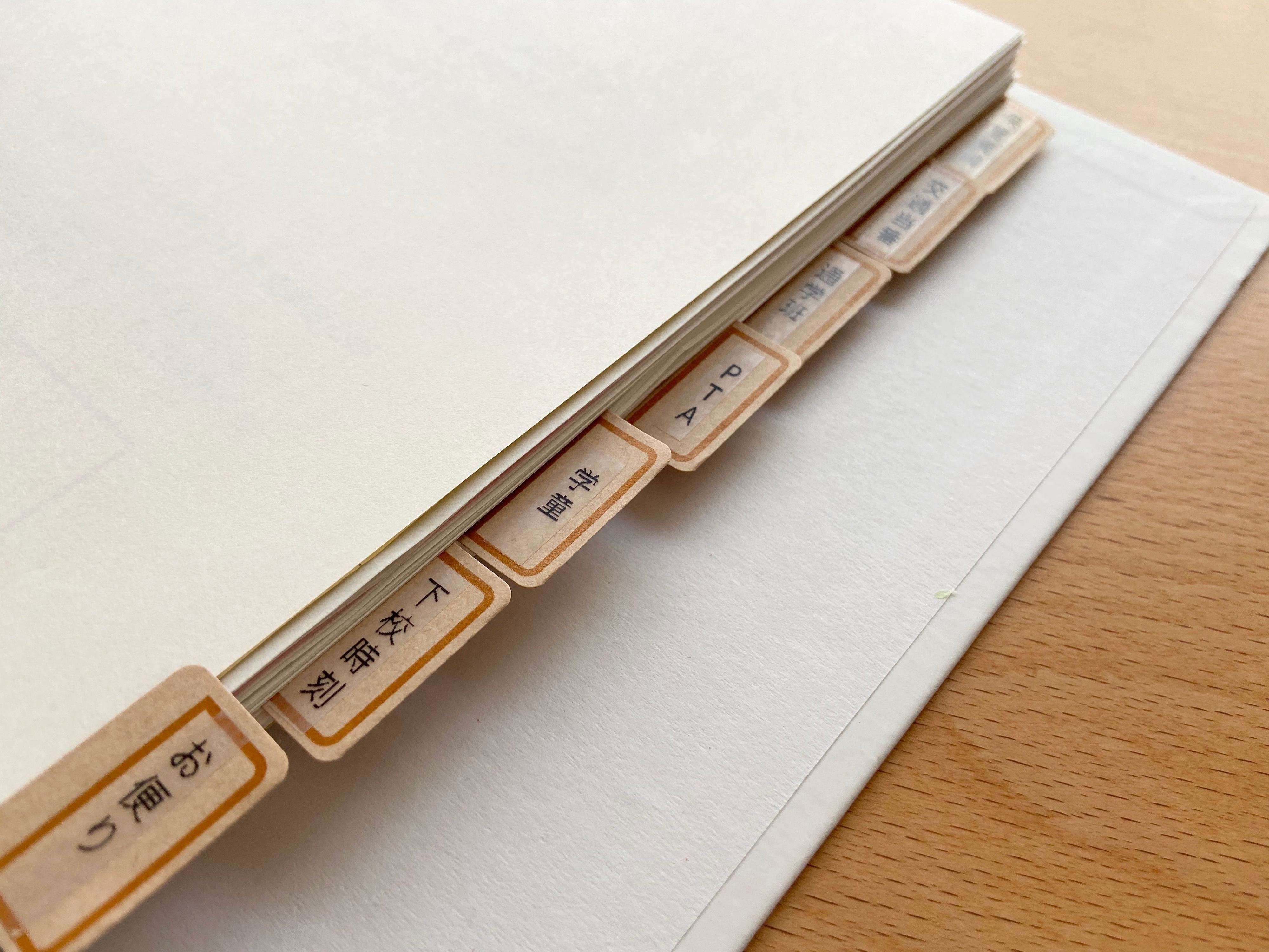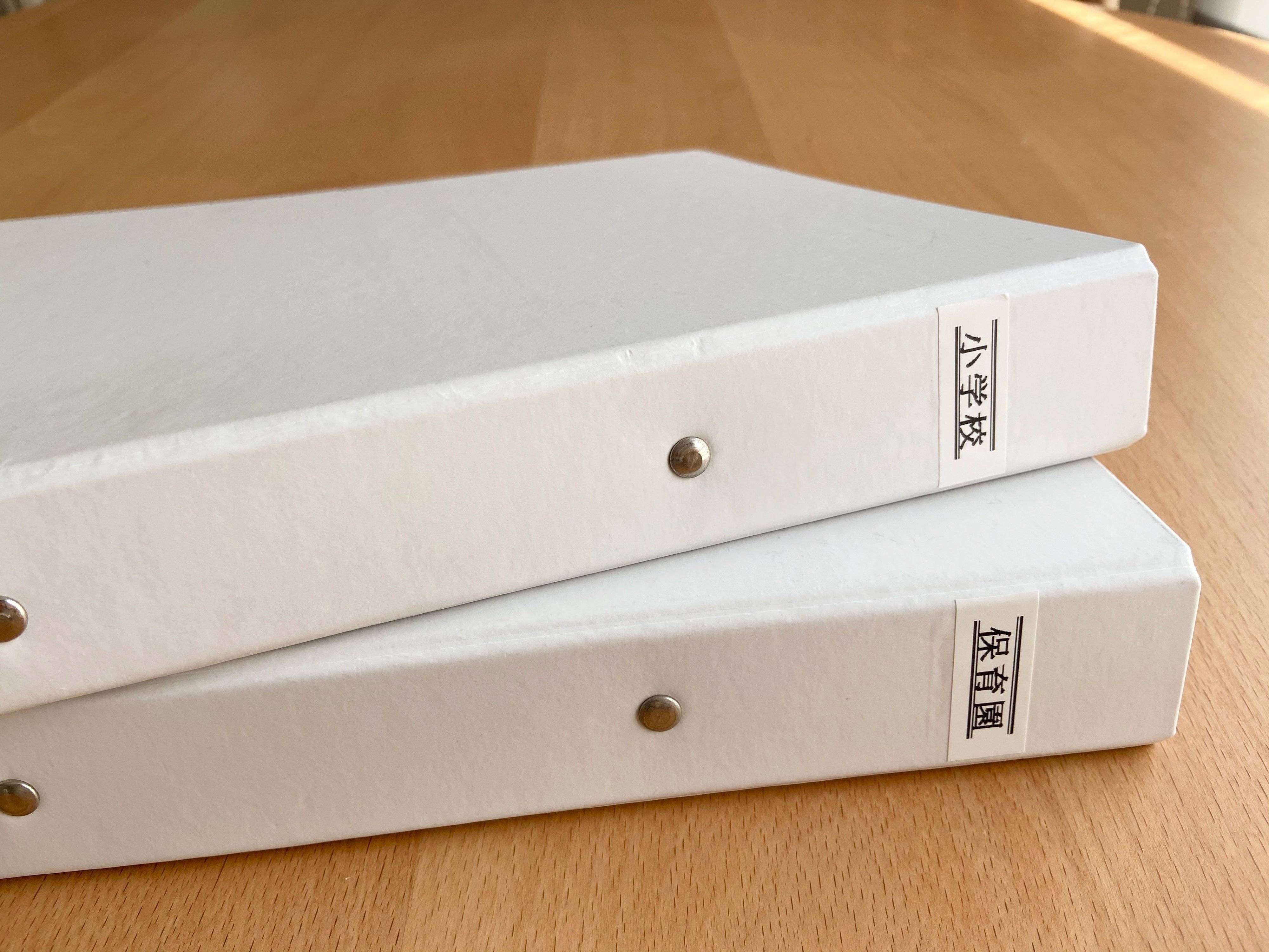 わが家ではダイソーの2リングファイルに、7つに分類して仕分けています。