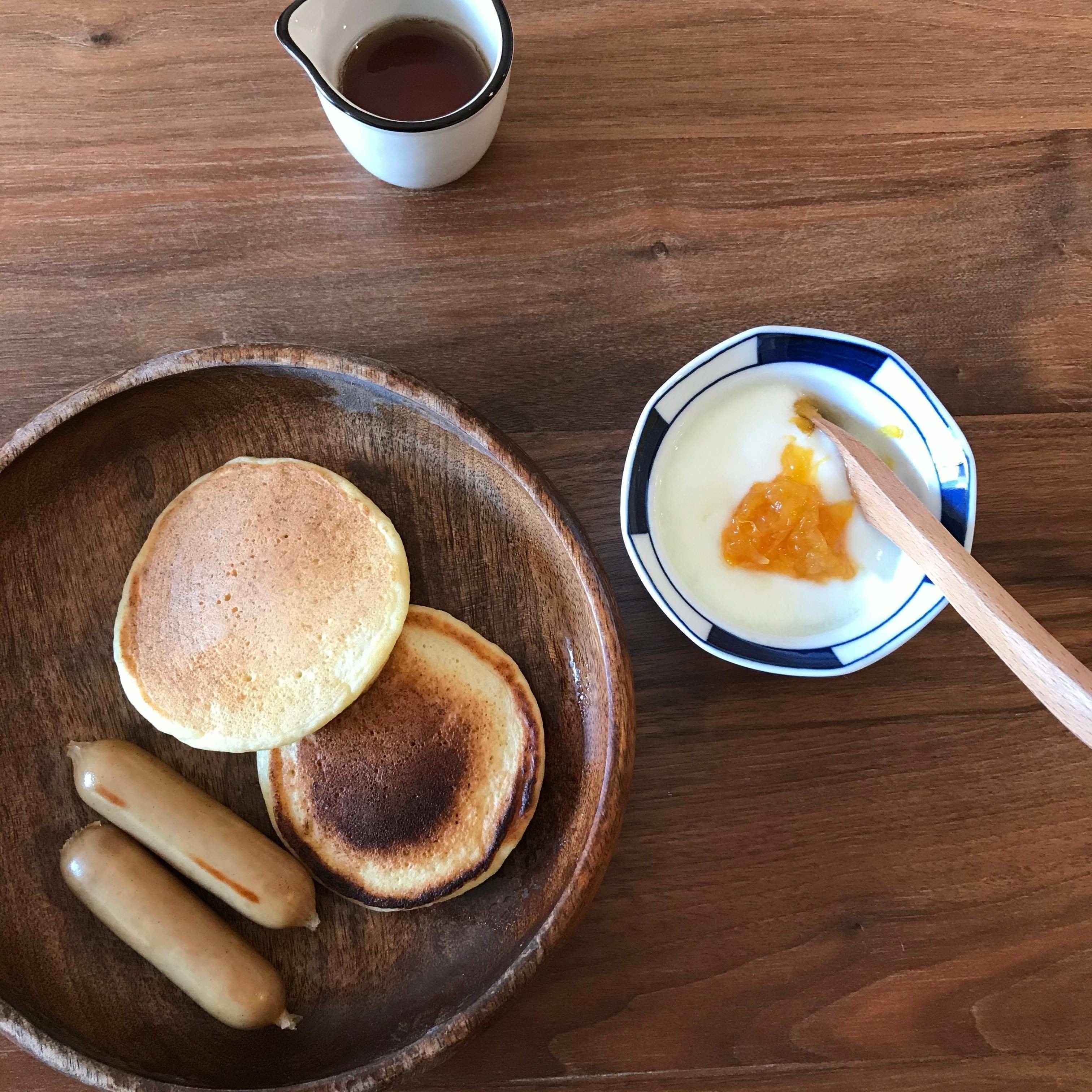 ▼ベーキングパウダーと砂糖があればホットケーキもつくれるし