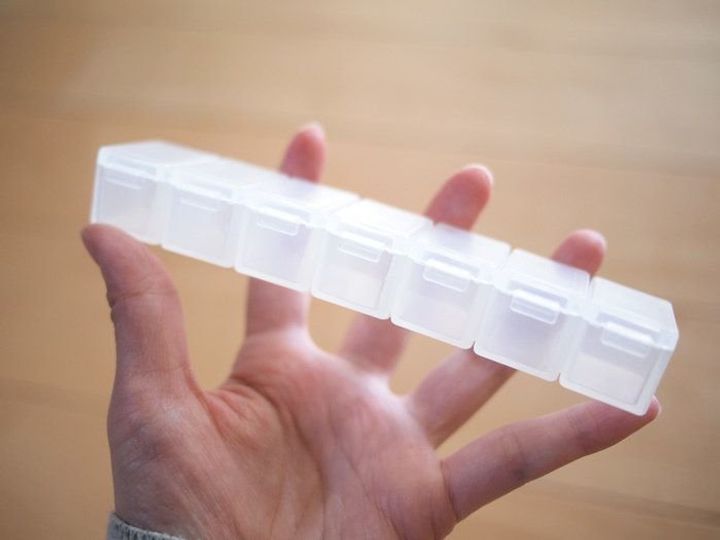 1週間分を想定して7つのピルケースに分けられていますが、朝・昼・晩・寝る前と、飲む薬が分かれているかたもいますよね…そんなかたにオススメなのが、こちらのつなげて使えるピルケース。好きな単位に切り離すことができます!