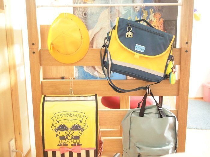 我が家では写真のようにハイベッドにいろいろつけてみました。使いやすそう!帰ってきたらまずここのフックにカバンをかけて…と自分から進んで片づけをしてくれることを切に望みます。そういった点にも期待しつつ、無印良品のステンレス横ブレしにくいフックシリーズ、超絶オススメいたします!