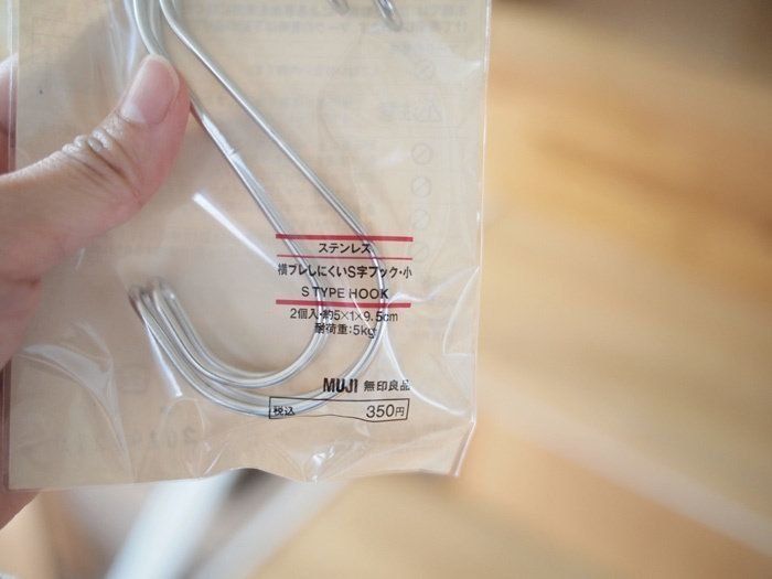 「横ブレしにくいS字フック」はステンレスでできているのでとても頑丈で錆びにくく、ほぼ永遠に使えるだろう…という勝手な期待を日々寄せておりますが、小サイズのものは2個入って350円(税込)!すごくお安いわけではないですが、手が届かない商品ではないですね。品質は確かなので個人的には「よくここまで抑えたな」といった印象。