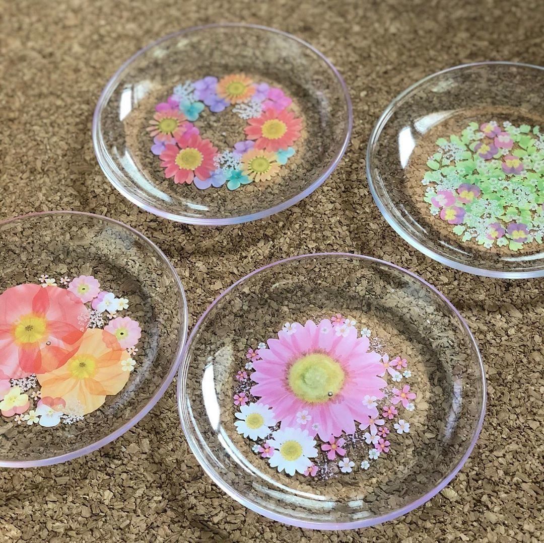 押し花のデザインがかわいらしい小皿。食事のときはもちろんですが、素敵なデザインなので、このまま飾ってインテリアにもアクセ入れとしても幅広く使用できそうですね。