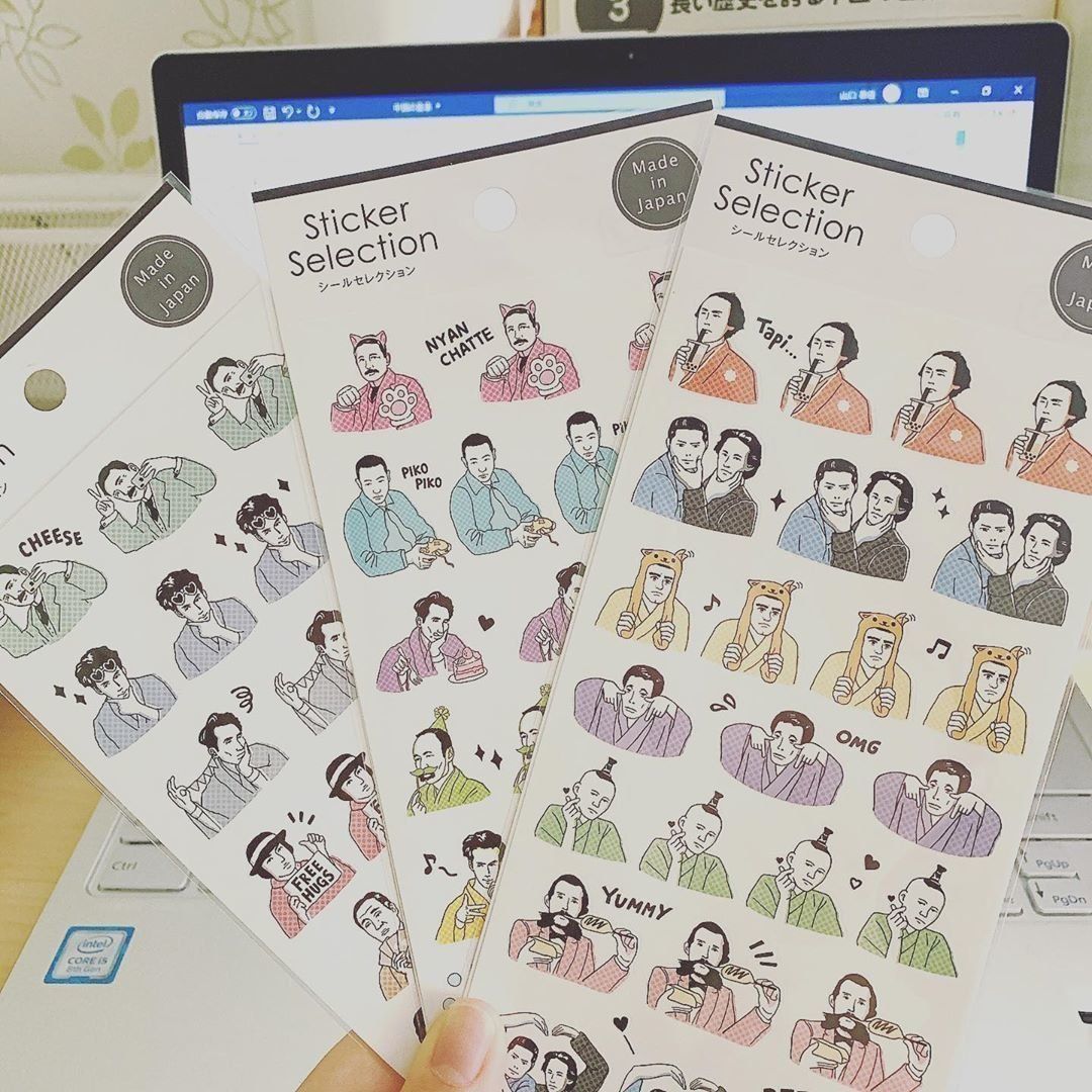 歴史上の人物が現代で流行していることを行っているというシュールなデザインのシール。手帳に貼ってもよし、メモに貼って相手を喜ばせてもよし。幅広く使えそうです。