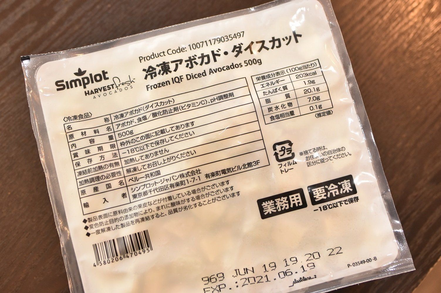 今回紹介するのは「冷凍アボカド・ダイスカット」。アボカドの皮をむき、種を取り、サイコロ状にカットして冷凍した商品です。500g入りで、価格は598円。