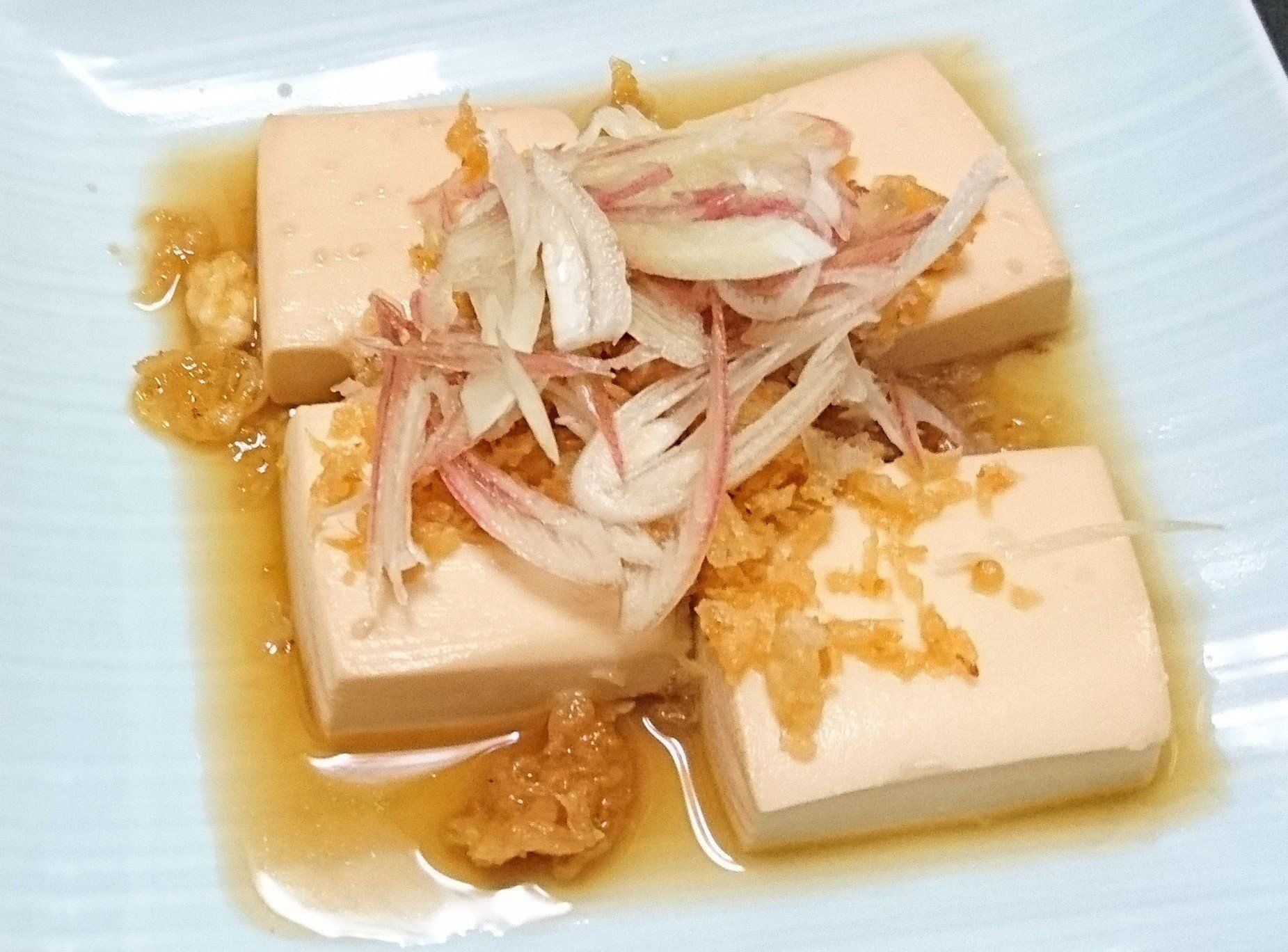 同じように豆腐も居酒屋メニューの食材としてはスタンダートですね。ふつうに冷奴にしてもいいのですが、冷蔵庫にあるもので工夫すると新しいメニューが生まれます。
