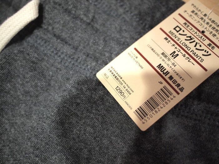 ユニクロやGUなどでも探して見ましたが、ここまでお安くなっているものは見つけられず…。そして安定の無印良品の商品なので、ネットストアでの買い物でもなんだかまあまあ安心です。「再生コットン入り 裏毛ロングパンツ」早速取り寄せてみました。