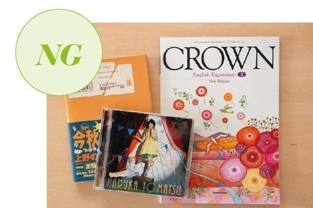 教科書や百科事典、漫画雑誌やシングルCDは寄付できません。汚れや傷みがあったり、表紙カバーがない本もNG。