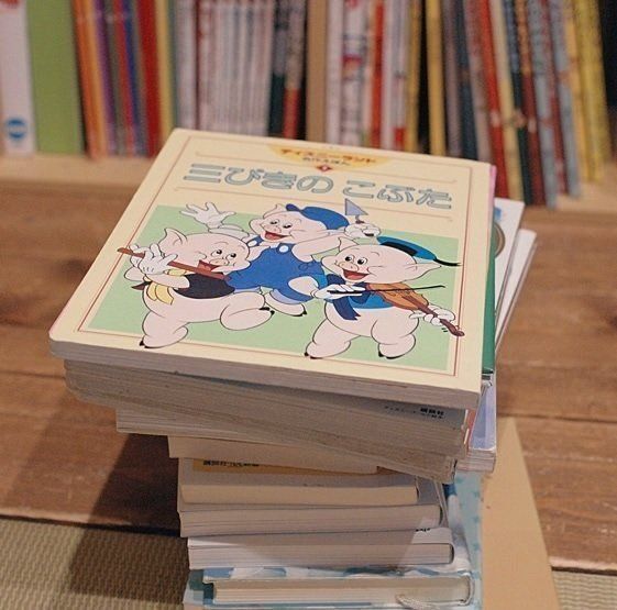 家中にある、もう読まない本を集めて積んでみたら、こんなに!絵本の下には夫と私の本。