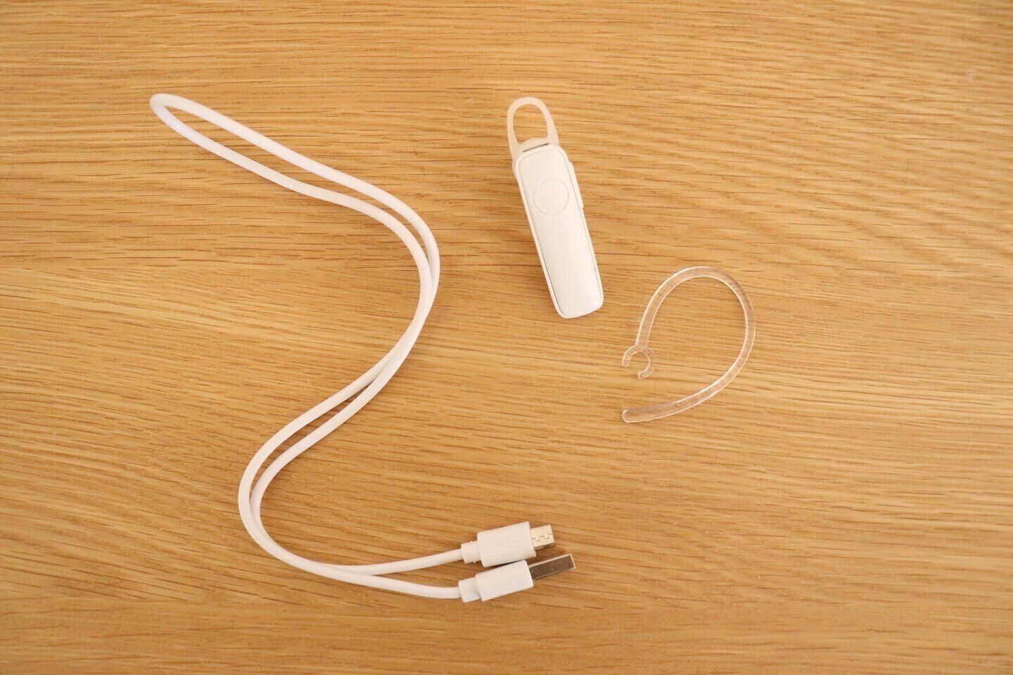 ダイソーの「Bluetooth ワイヤレス片耳イヤホン」は何といっても300円で買えるのが魅力的。なかには、イヤホン・イヤーフック・充電器・説明書が同梱されています。