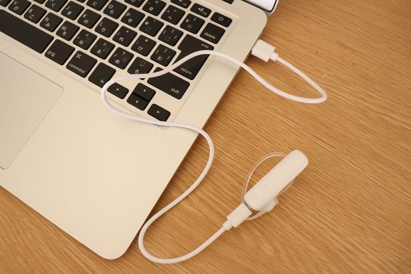 付属の充電器はUSBケーブルなのでパソコンなどでも充電可能。