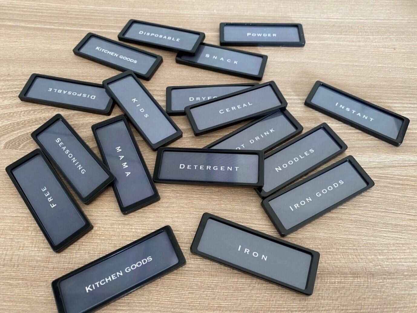 フレームだけでなく中のラベルカードもついているのでそのまま使えます。子どもにも見やすいので、どこに何があるかがわかり「ママ~○○とって~」となることが減るはず。