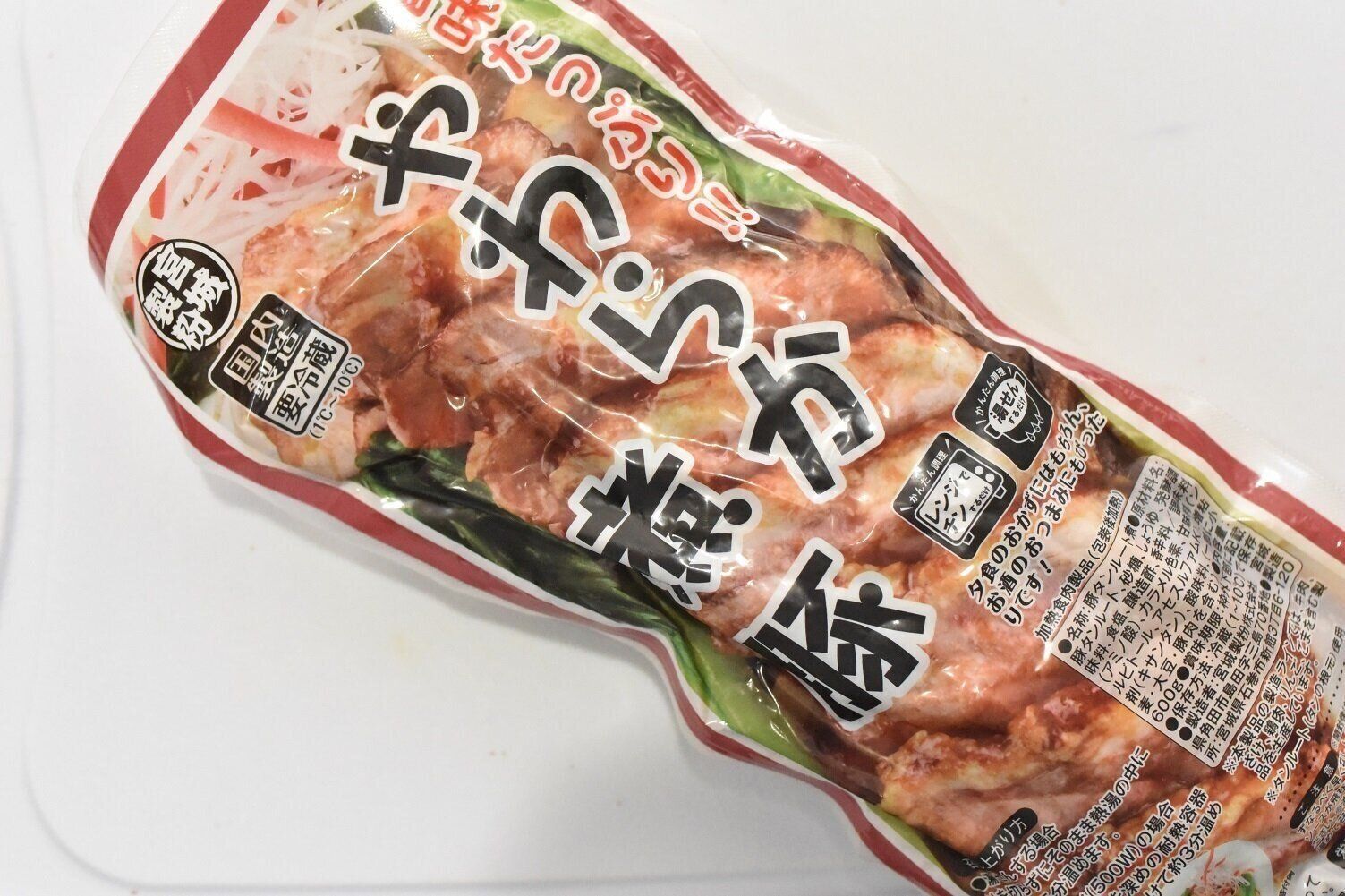 今回紹介するのは、「うまみたっぷり!!やわらか煮豚」。容量は600gで、価格は485円(購入時の価格)でした。