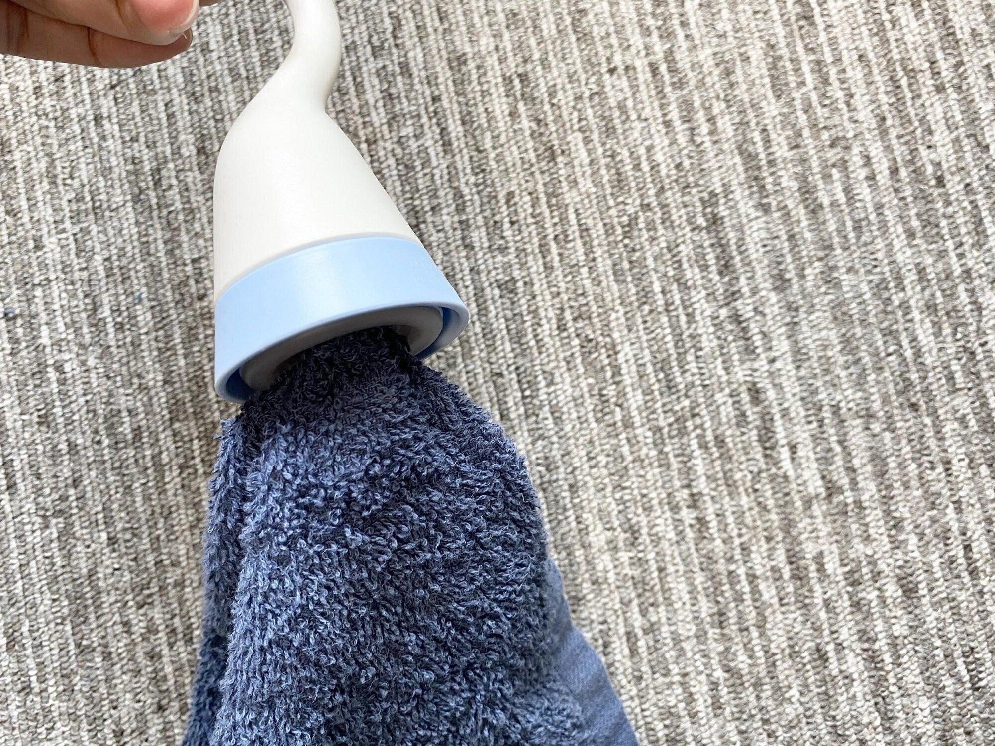 使い方はとっても簡単。ホルダーの底がシリコン製の装着口になっているので、そこにタオルをググッと入れ込むだけでセット完了!ガーゼのような薄いハンカチはもちろん、厚手のタオルもバッチリ固定してくれます。