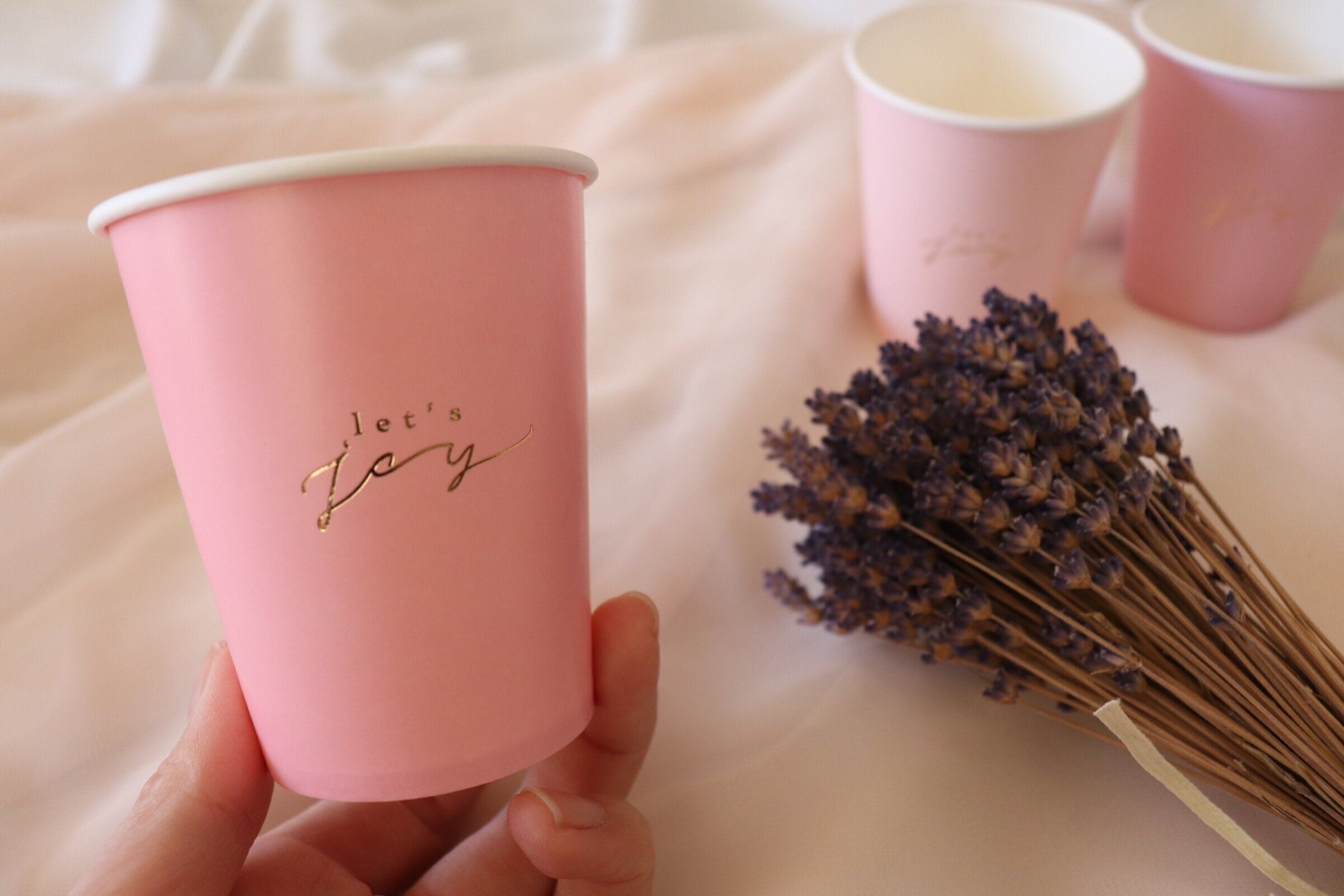 先ほど紹介したお皿とおそろいのペーパーカップもあります。色合わせをしなくても自然とまとまってくれておしゃれなテーブルコーディネートに。8個入りで価格は100円。