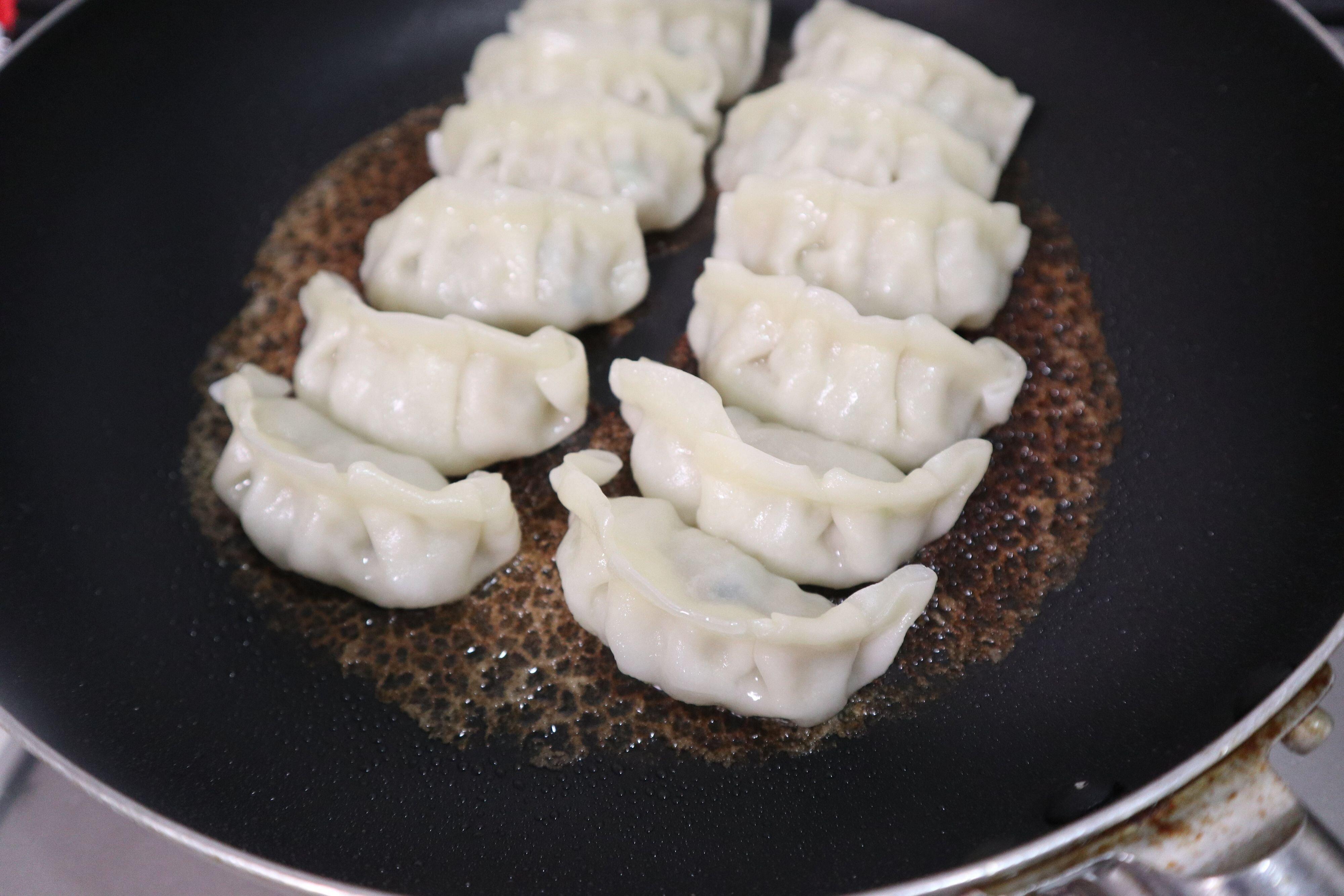 この餃子は、焼くのもとても簡単!フッ素加工のはがれていないフライパンを使えばだれでもキレイに焼けます。