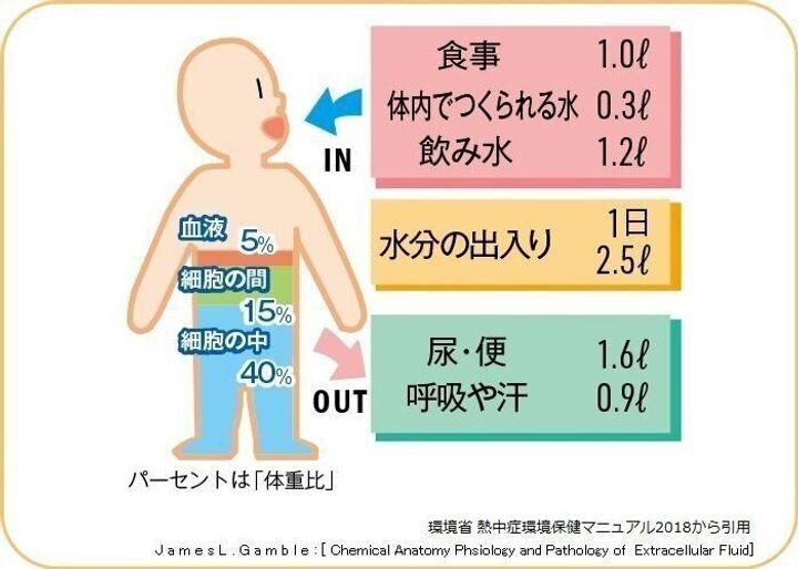 何もしていなくても水分は減っていくのだということを自覚して、常にこまめな水分とミネラルの補給「点滴飲み」(点滴のように水分補給をし続けること)を心がけましょう。