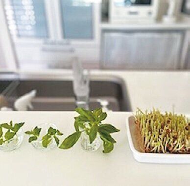 再生野菜の育て方は2通り。豆苗のように水だけで育てるもの、ハーブやねぎ類、サラダ菜のように水で育てて土に植え替えるものがあります。