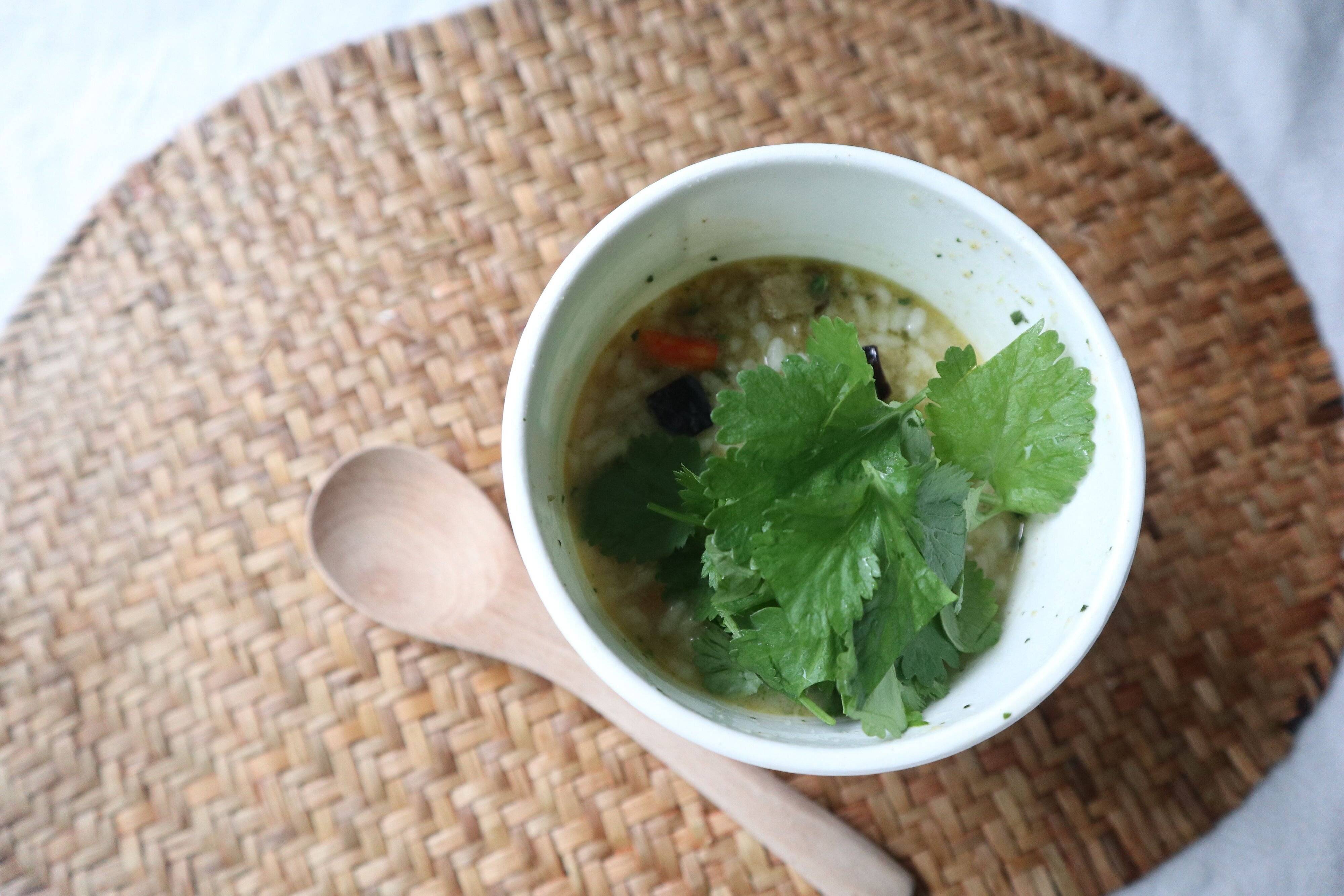 お好みでパクチーを入れて食べるのがおすすめ。肝心のお味は、ちゃんとグリーンカレーでおいしい!インスタントであることを忘れてしまうほど、本格的な味わいで、しっかりと辛く、ボリュームあります。