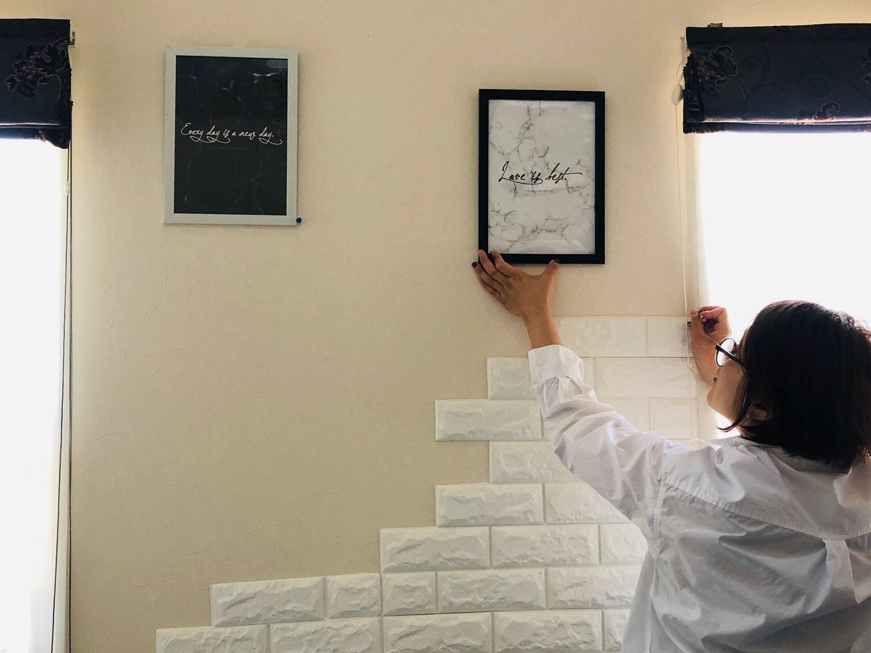 大理石デザインはレンガ調の壁紙とも相性抜群で、そのまま飾ってもいい感じ!