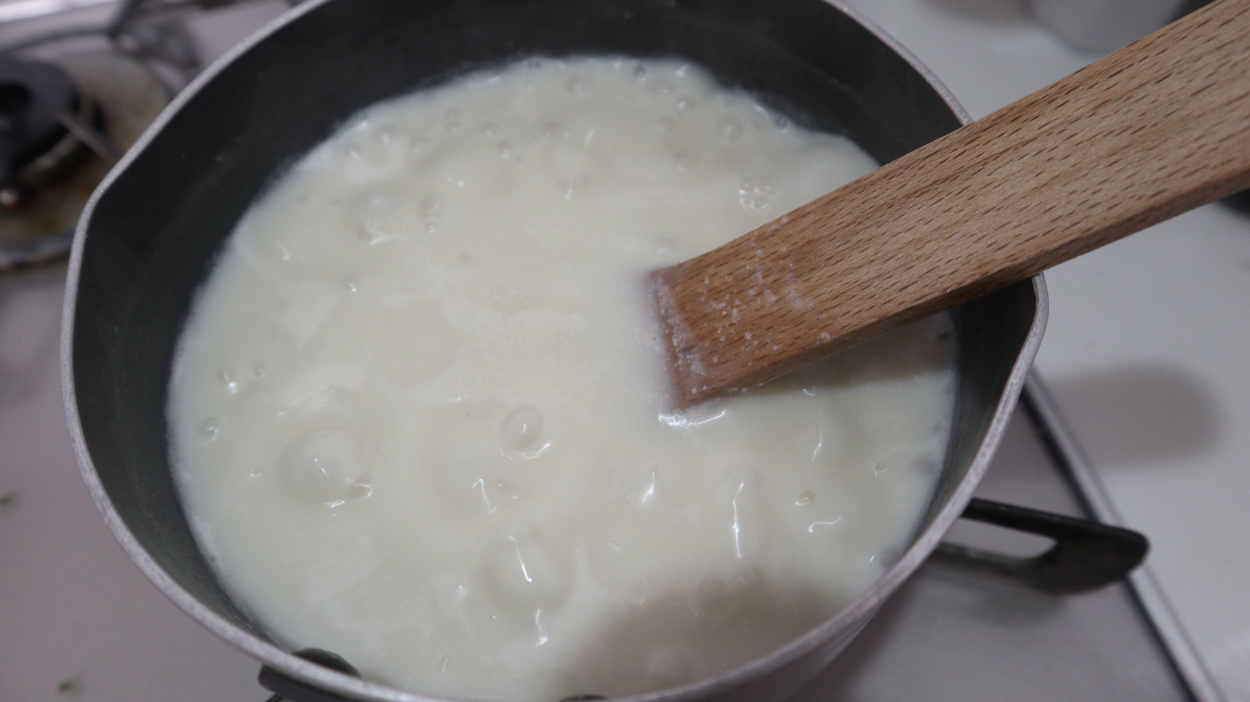 焦げやすいので、なべ底からしっかり混ぜましょう。