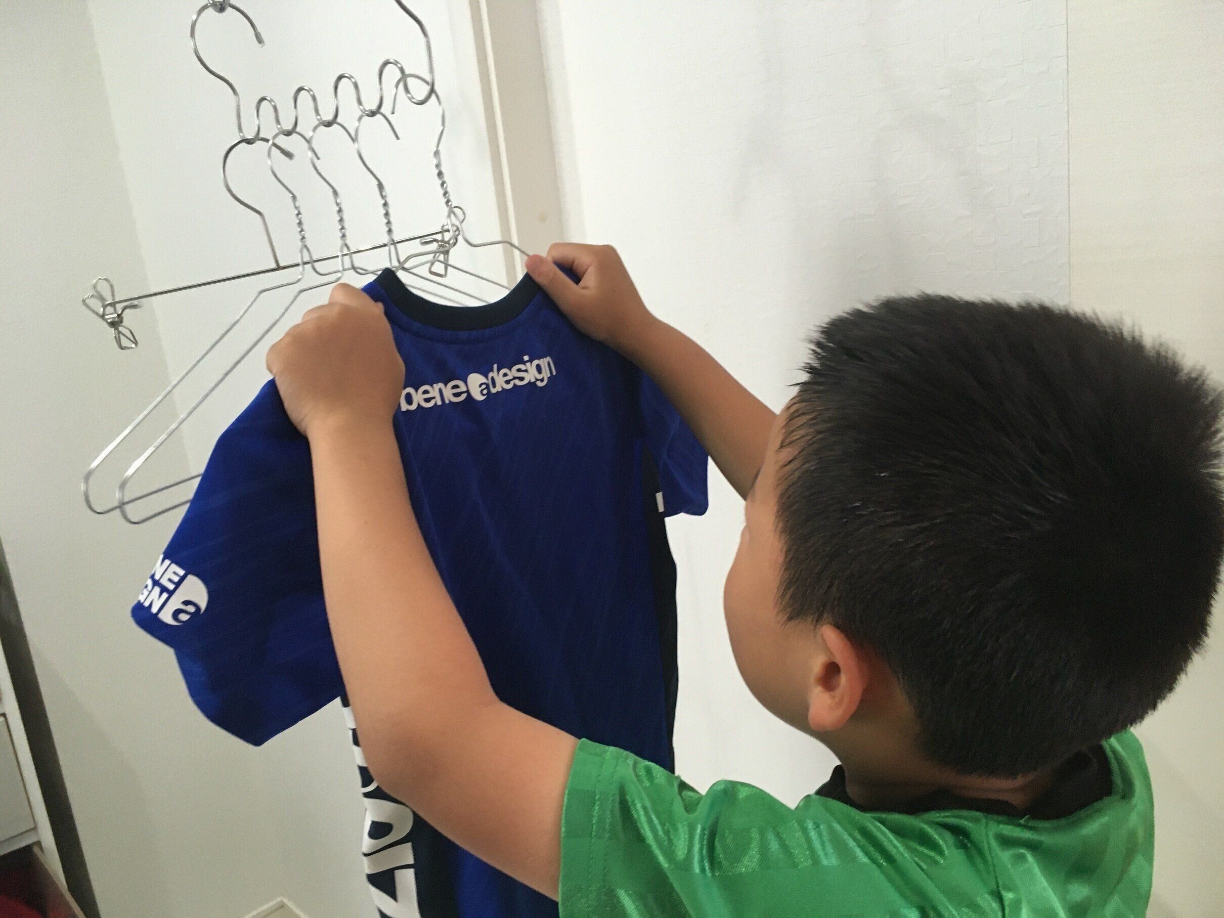 いきなり冬着を干すのは袖も長くて重たいし、枚数も多くて子どもにはハードルが高いです。薄着の今がオススメですよ。