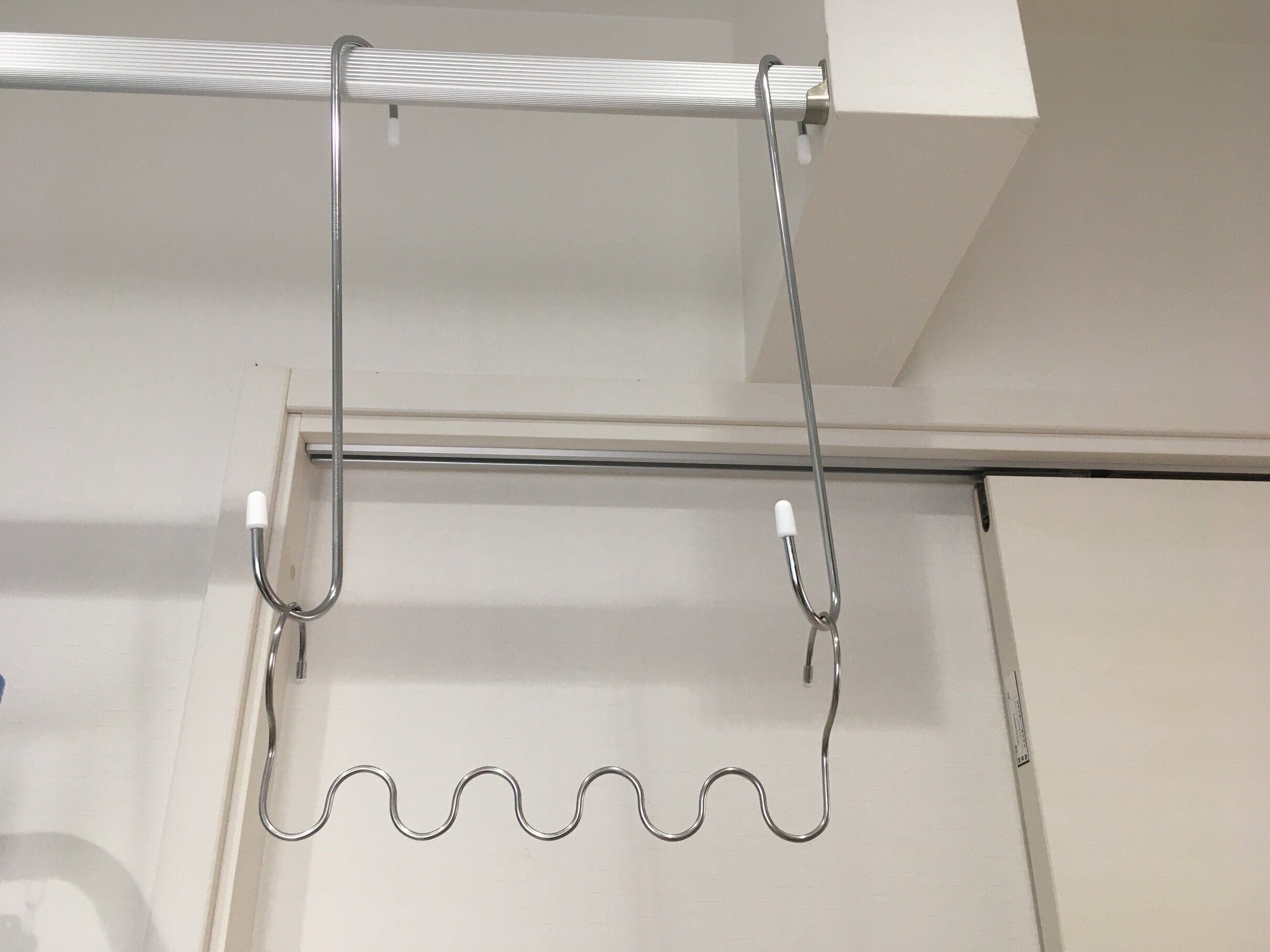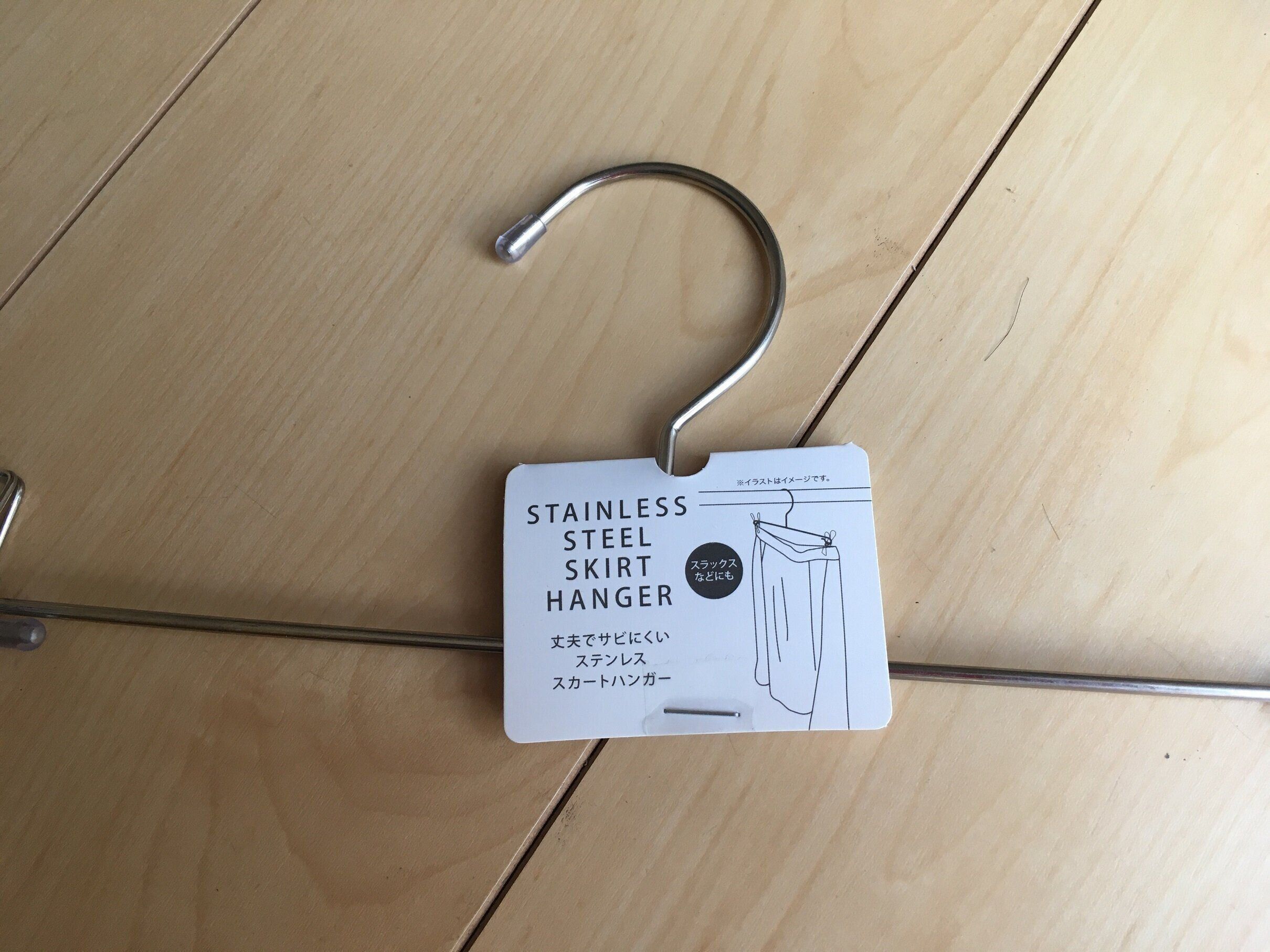 こちらも同じくセリアのステンレススカートハンガー。ステンレスだとさびにくいのもポイント高いですね。