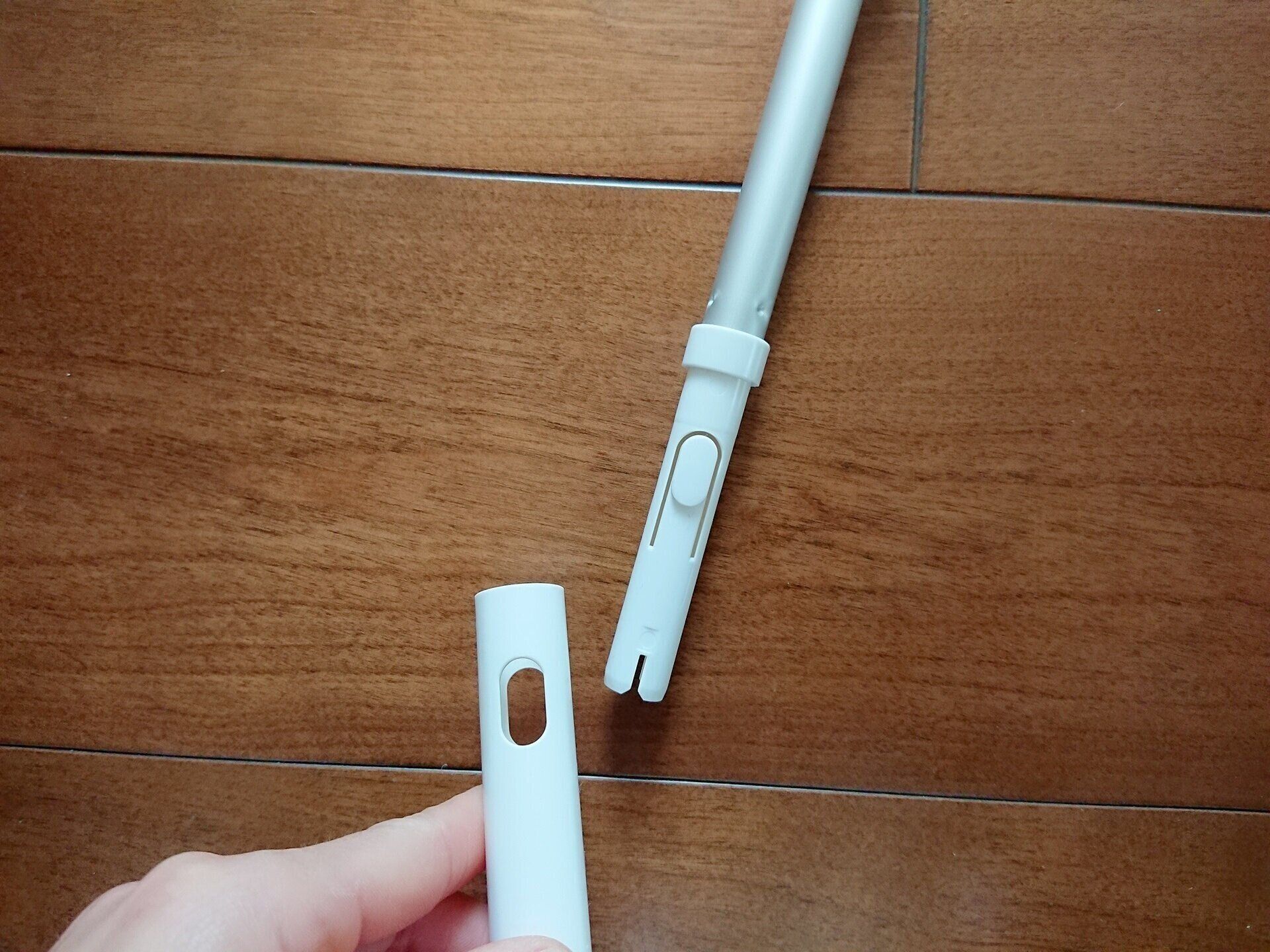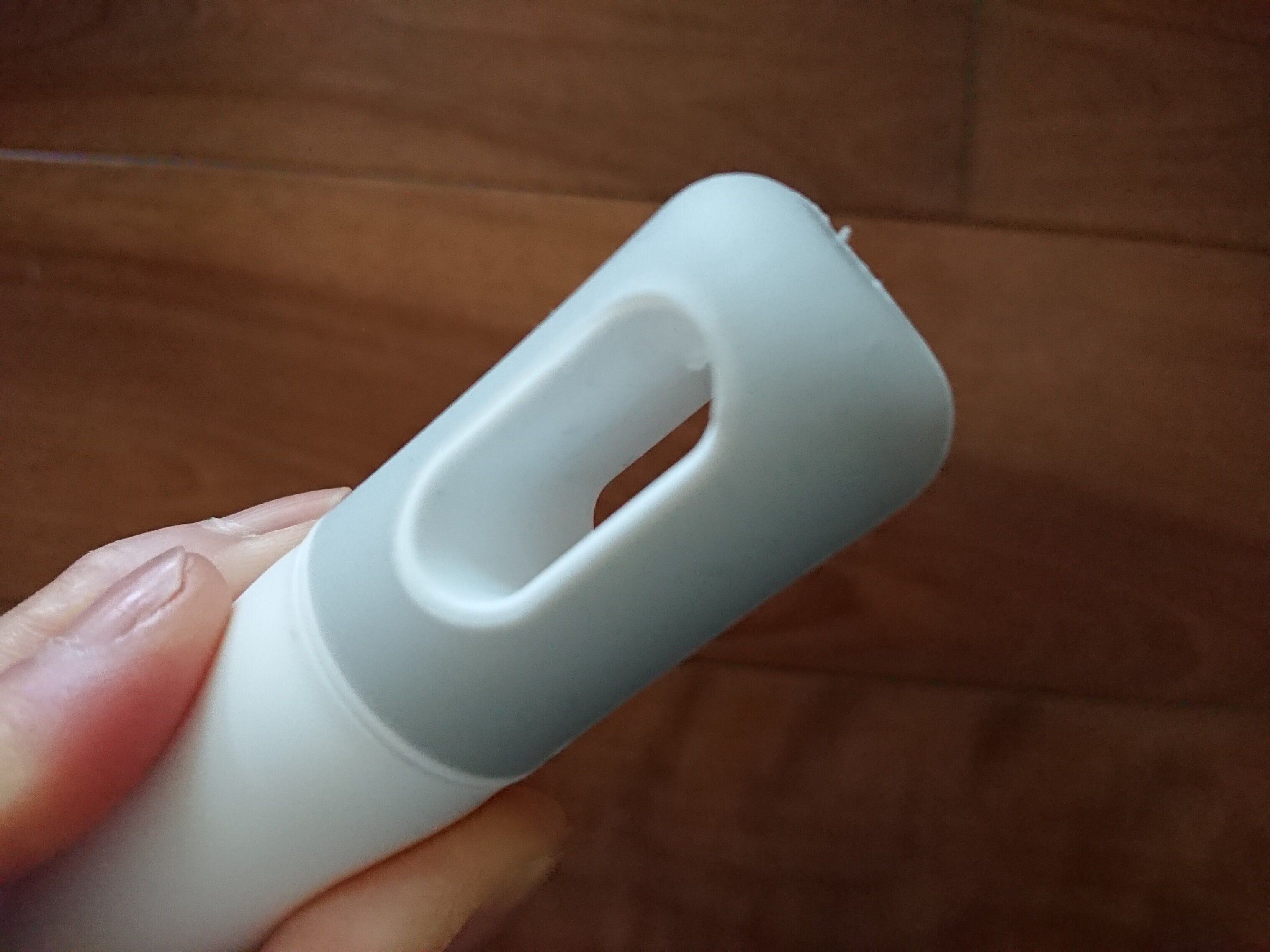 グリップ先端は合成ゴムでできているので、別の用事で少し手から離さなければならないとき、壁に立てかけたりしますよね?そんなときは倒れにくいし、万が一倒れたとしてもゴムなので壁紙や床などを傷つけてしまうことが少ないと思います。