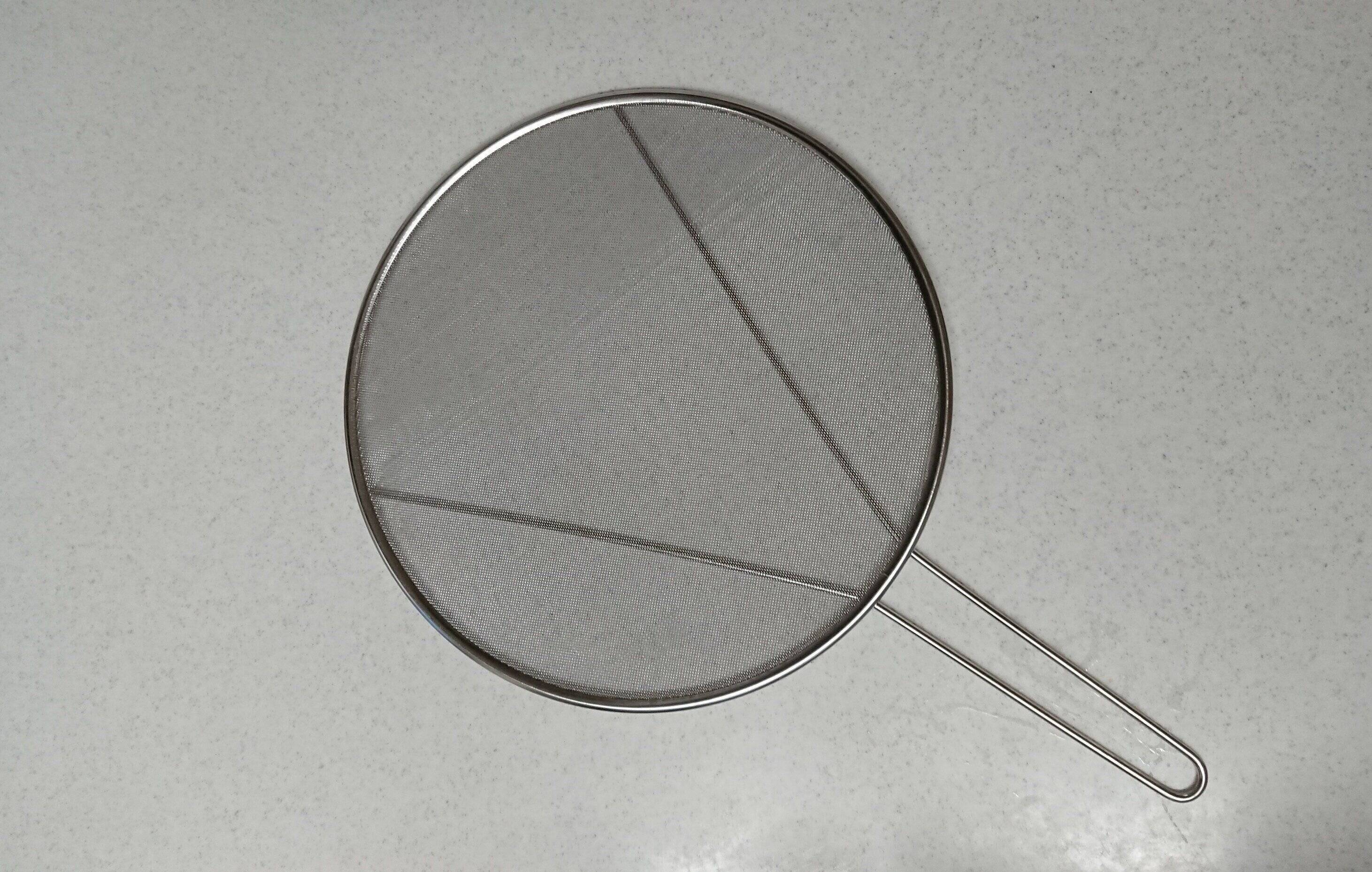 長い持ち手の先についているのは網目状になった円形のスクリーン。このスクリーンを揚げ物調理中の鍋などに被せれば、細かい網目が油はねをバッチリ防いでくれます。