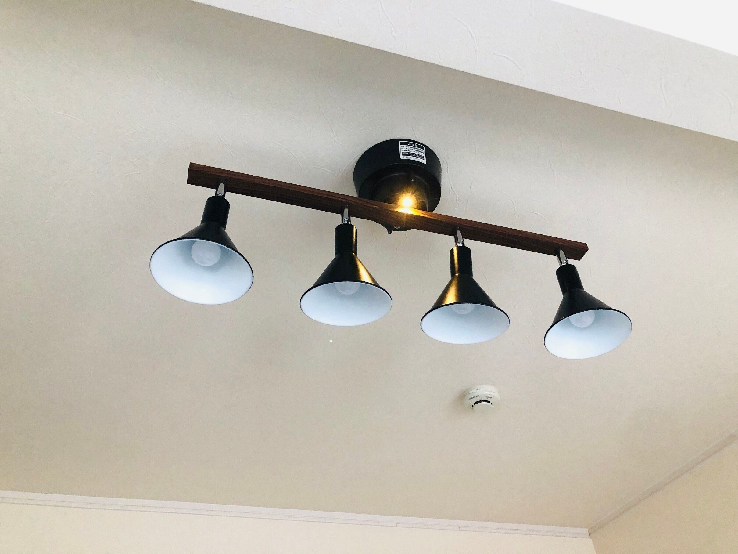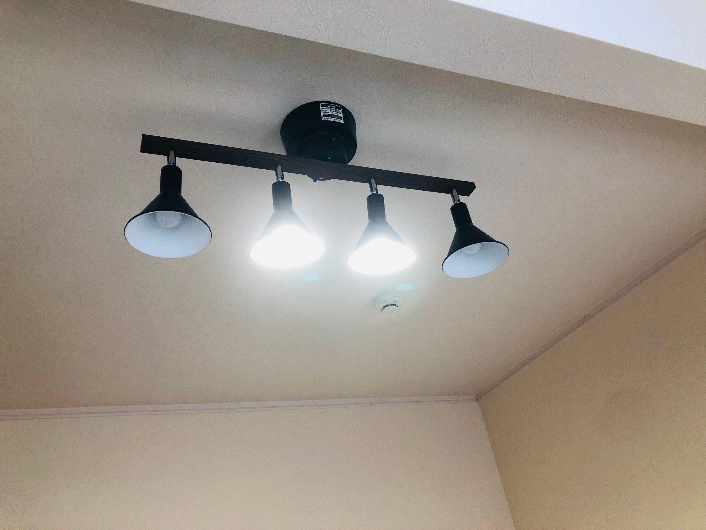 今回私がご紹介するのはニトリの「4灯シーリングライト」で、価格は9,250円。シェードのカラーはブラックとホワイトの2色があり、サイズは幅67.1×奥行15×高さ29.4cm。重量は1.6kgとなっています。