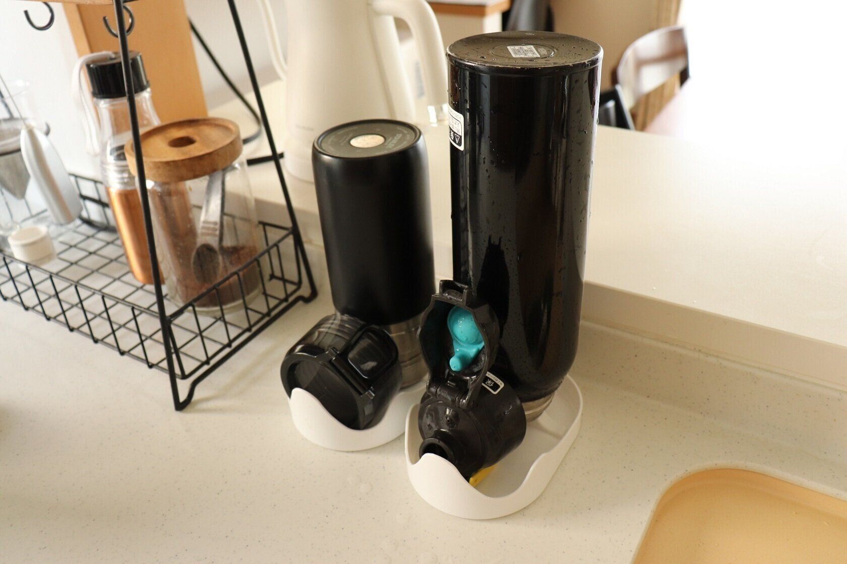 わが家では水筒は毎日出番があるので、このボトルラックを設置することによって洗って乾かしておく定位置ができました。