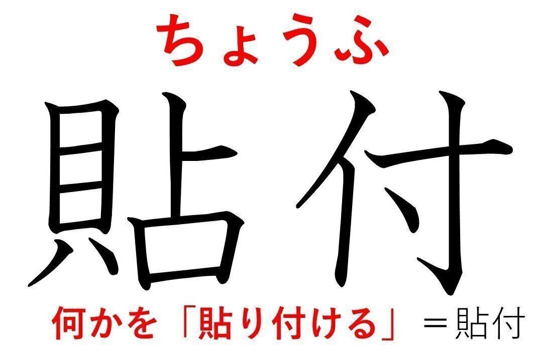 のりなどを使って、なにかを貼り付けることを「貼付」というのです。「書類を貼付してください」と言われたら、のりなどではがれないようにくっつけてくださいね。