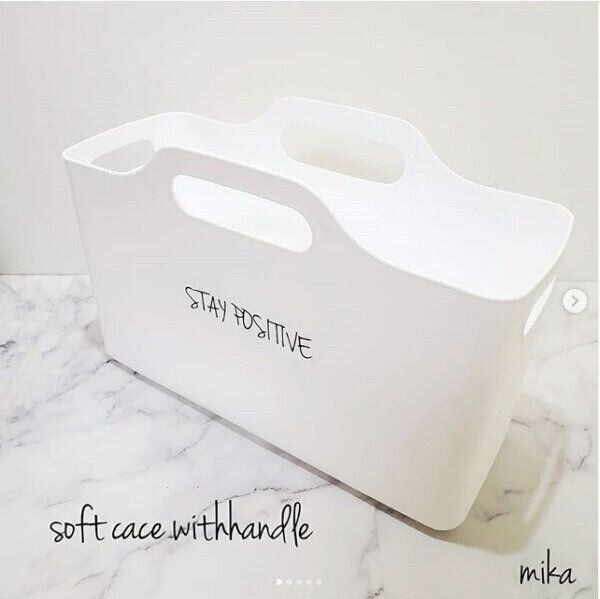 ハンドルつきソフトライナーケースは、やわかい質感、使いやすいサイズ感、まっしろな無地カラーとどこをとっても文句なし!インテリアや年代問わず使いやすいと話題に♪