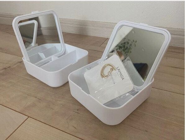 続いてご紹介するのは注目の新商品、ミラーつきのアクセケースです。ミラーと仕切りつきなので、デイリー使いするアクセの一時保管場所としてもおすすめですよ。