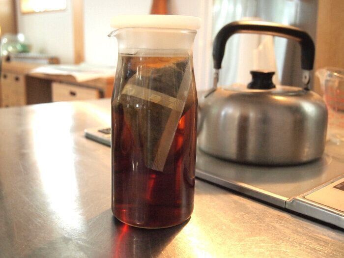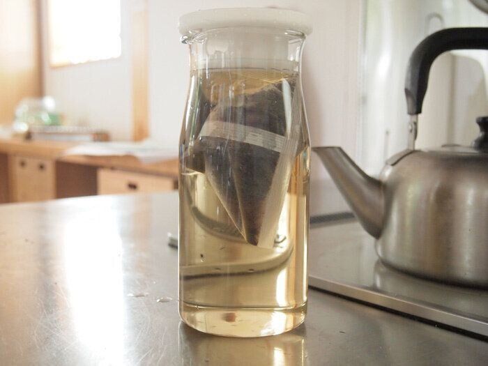 さらに200mlほどの水を注ぎ、コーヒーバッグが完全に水に沈むようにしましょう。今回購入したピッチャーは700mlのものなので、ピッチャーの容器いっぱいまで水を入れました。これを4時間ほど冷蔵庫で冷やすと…おいしいアイスコーヒーのできあがりです!