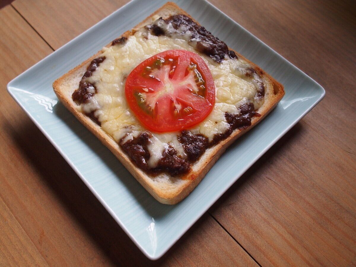 ミートソースをパンに塗り、とろけるチーズを乗せたら、あとはオーブンで焼くだけ。このとき、冷蔵庫に余った野菜やキノコなどを乗せるのもおすすめだとか。
