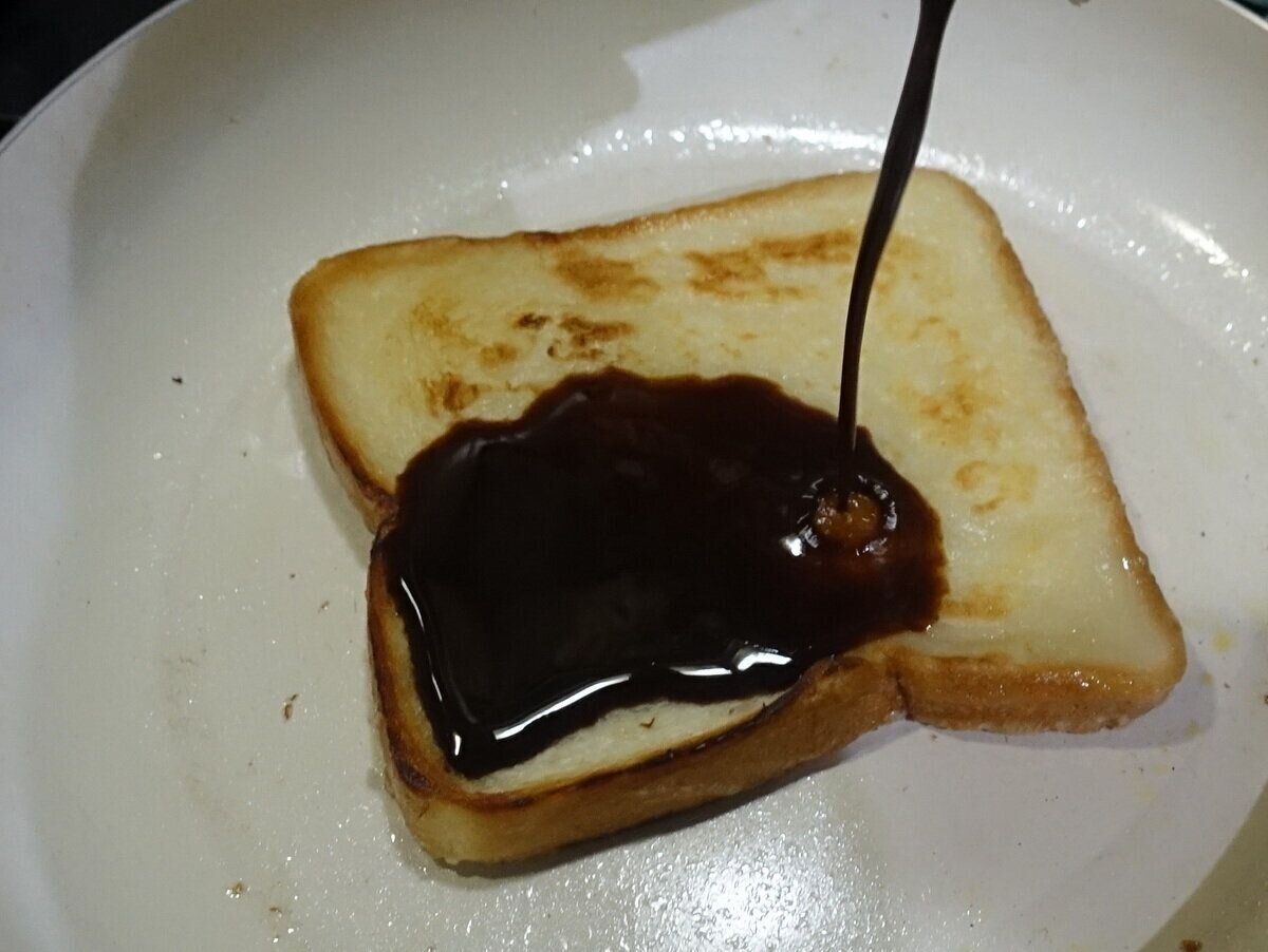 まず、水に溶いた小麦粉にパンを浸します。両面に漬けたら、フライパンにラードを入れて焼いていきましょう(ラードがなければサラダ油でもかまいません)。焼き目がついたらウスターソースをかけて少し焼きます。