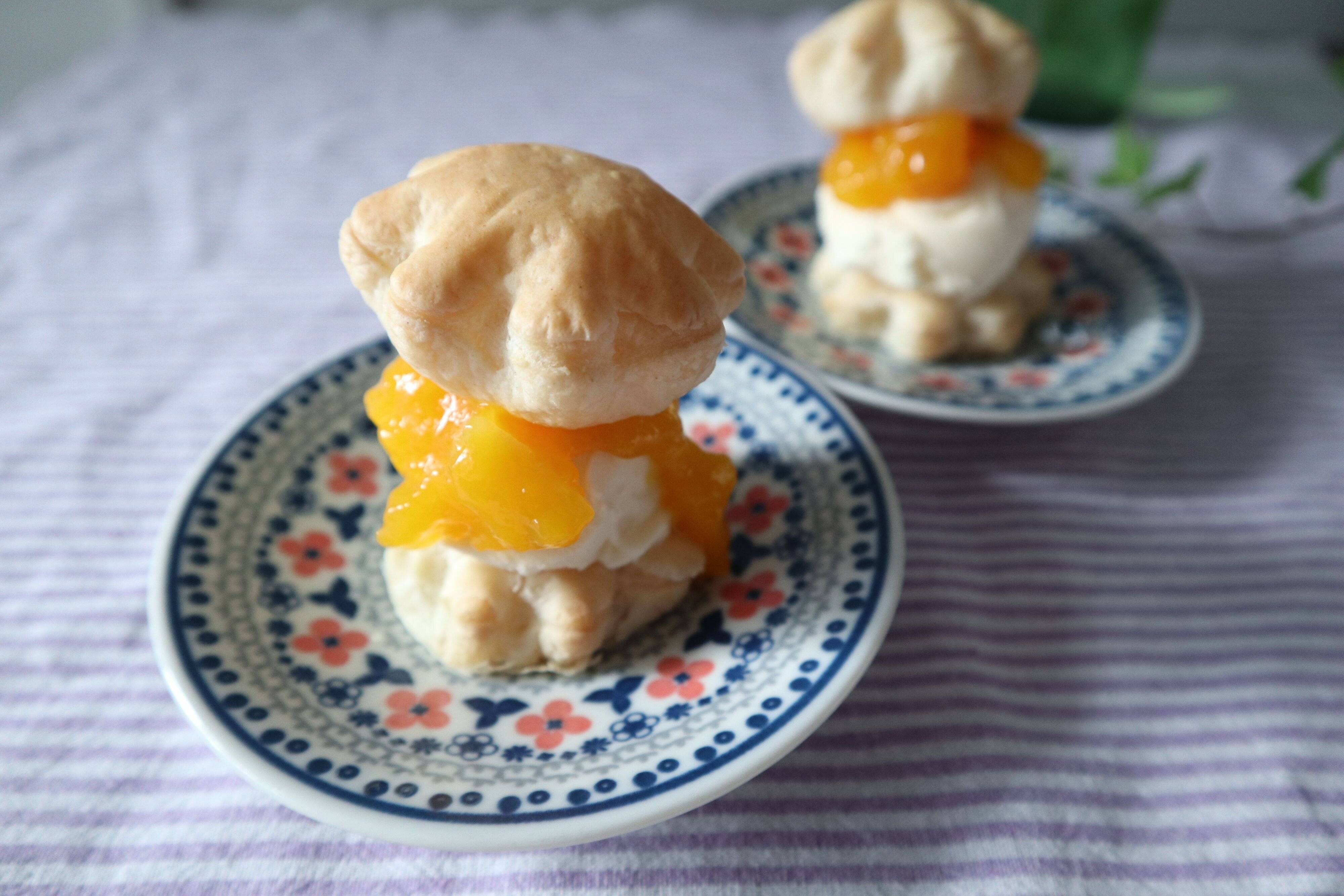 見た目もかわいいパイアイスサンド。5分ほど自然解凍したパイシートをお好みの型で抜いて、200度のオーブンで13分焼きます。冷ましたパイシートでアイスクリーム、ジャムをサンドしたら完成。食べるときはぎゅっとつぶして大きなお口でいただきます。