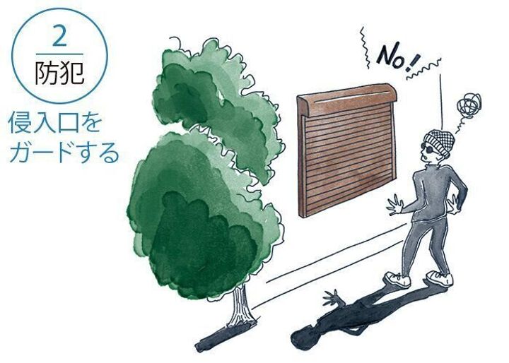 侵入手口として多いのが窓ガラスを破壊して入る方法。シャッターでガードすれば、窓ガラスを守るうえ、空き巣に狙う気を起こさせない視覚的な効果も。