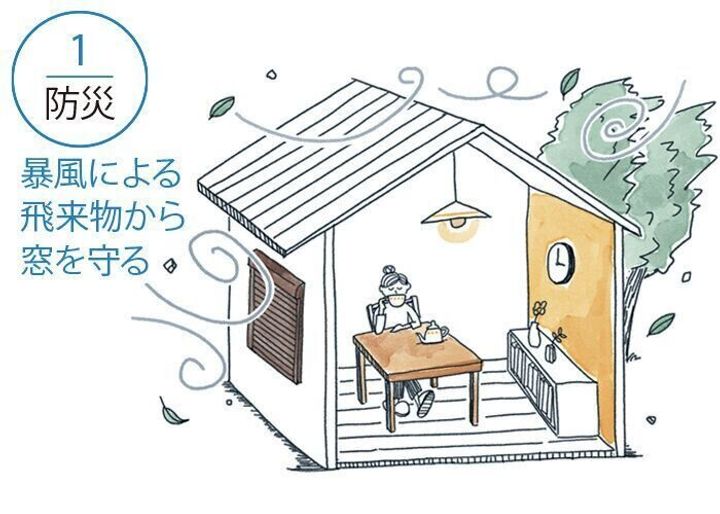 降り注ぐ光と、穏やかな風。窓は、住まいに快適なひとときを運んでくれます。その一方で、空き巣の侵入口になりやすかったり、強風による飛来物で窓ガラスが割れてしまう心配もあります。そんなときにおすすめなのが、「かんたんマドリモ シャッター」。外壁を壊したり、窓枠をはずしたりせずに取りつけ可能。一つの窓につき約2時間の作業で取りつけできます。シャッターがあるだけで、防災面でも防犯面でも、安心度がぐんとアップ。家族の暮らしを守るアイテムとして、注目です。