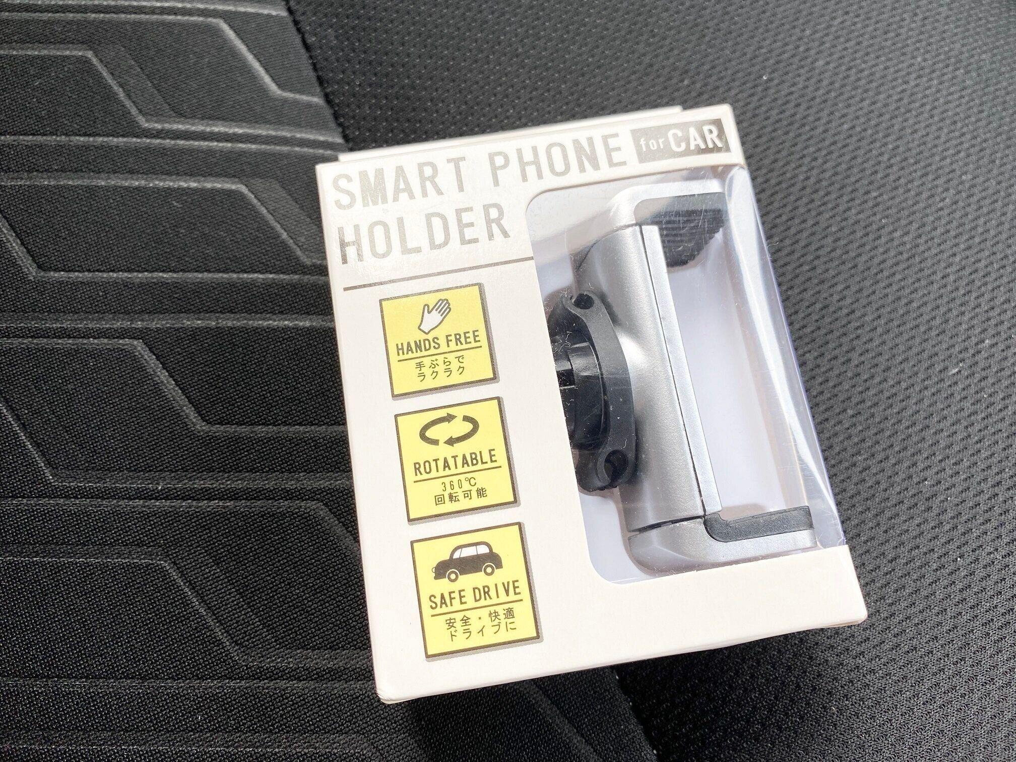 最後に紹介するのは「スマートフォンホルダー」(価格300円)です。突起部分をエアコンの吹き出し口に差し込んで使います。外れないか確認できたらスマホを挟むだけで完成!