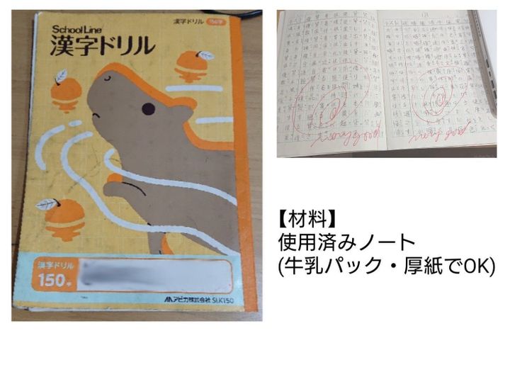 今回は使用済みのノートを使いましたが、無地の面があればよいので、