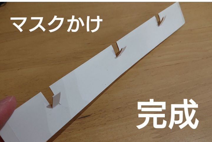 ちなみに、100均(ダイソー)で買えるコードフックを使えば、たくさんのマスクかけを一気につくれるので、100円SHOPで買い出しが可能ならこちらもオススメです。