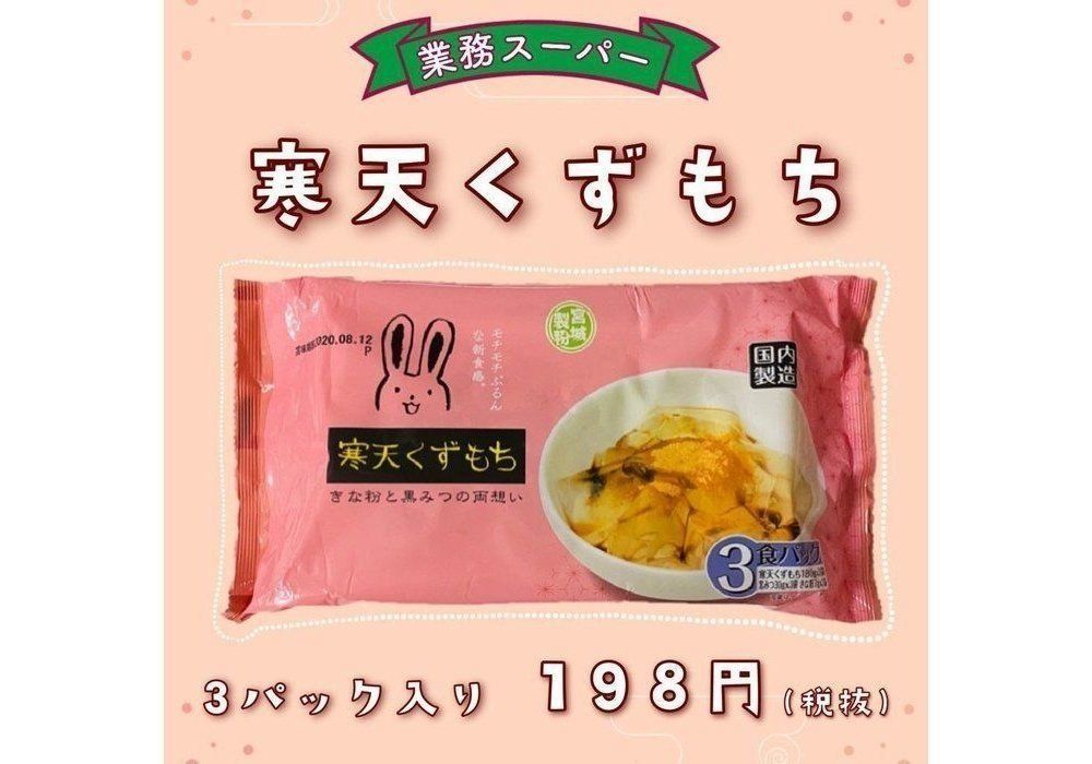 業務スーパー、現在の状況では頻繁に行くのはむずかしいと思いますが、定期的なお買い物の際に「寒天くずもち」を見かけたらぜひ試してみて下さいね!