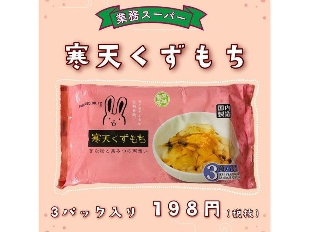 「寒天くずもち」は3パック入りで198円で、1つあたり約70円と業務スーパーならではのお得価格。