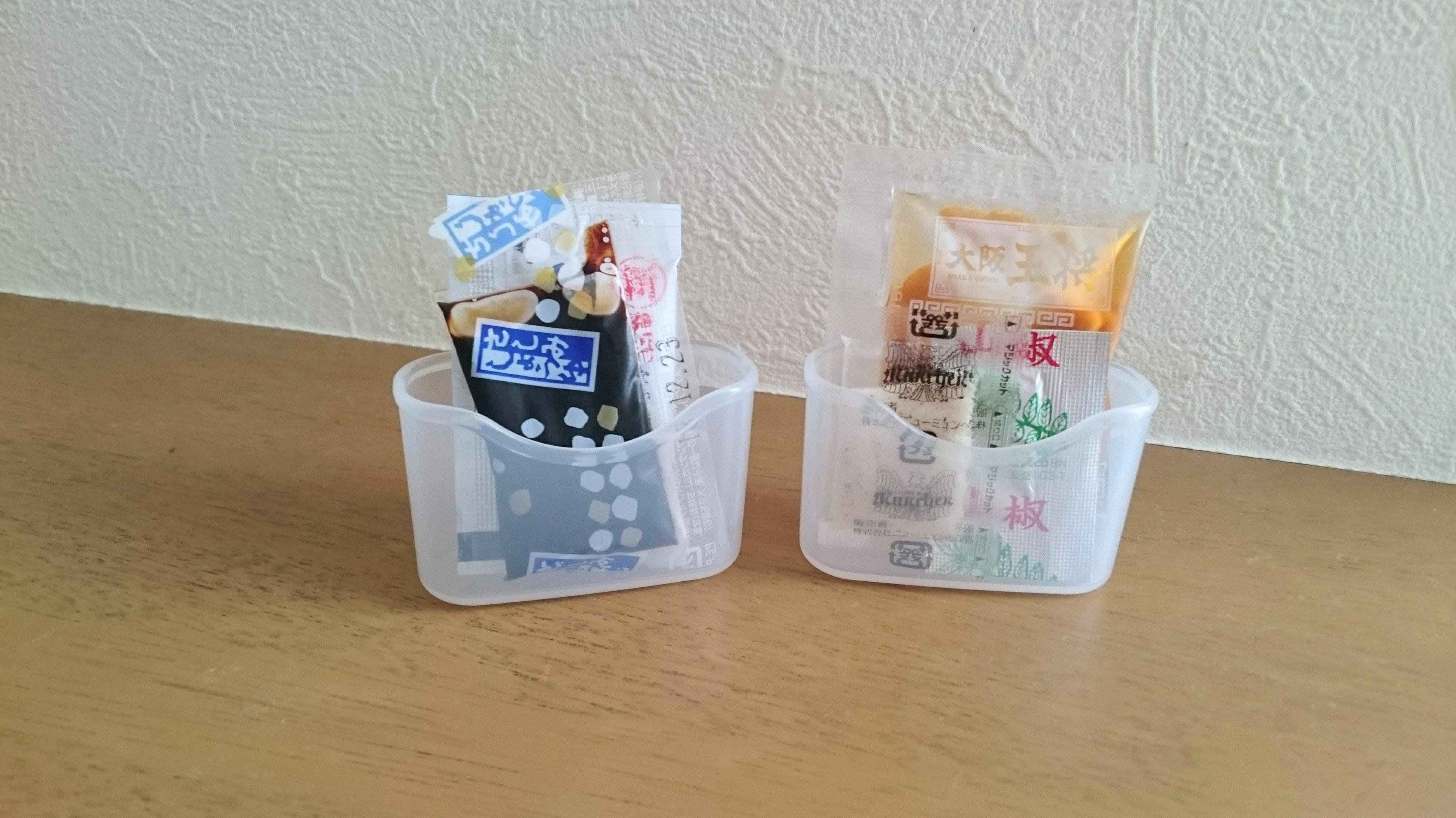 こちらはいろいろな食品に付属してくる小さな調味料や薬味などをまとめて収納するのにちょうどいいミニポケットです。