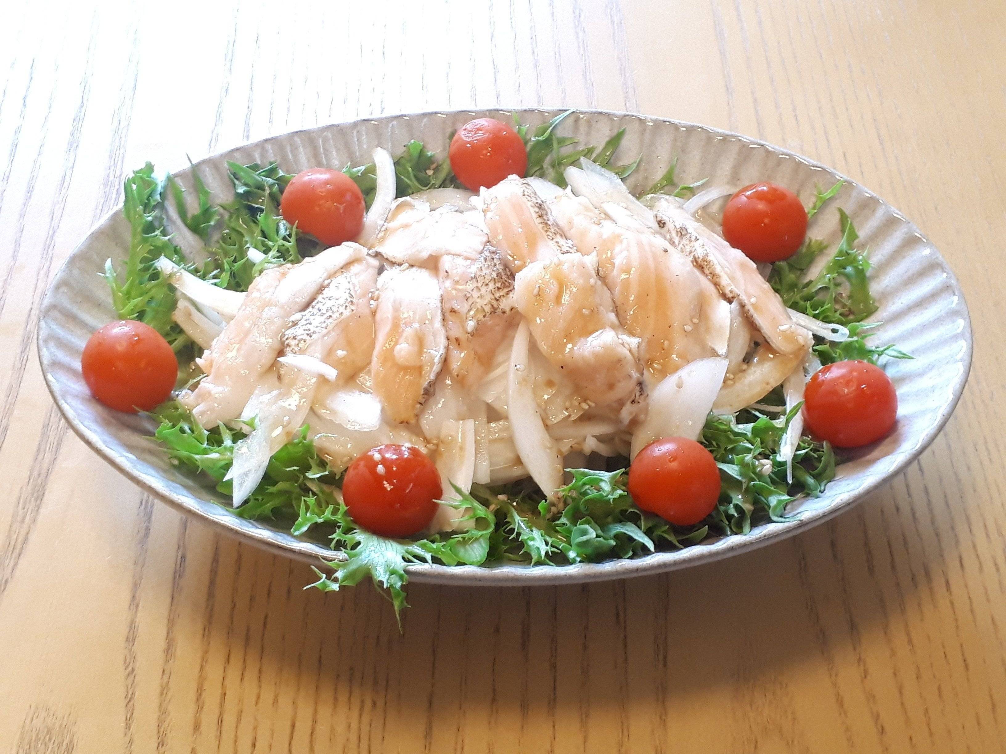 炙りトロサーモンは脂がのっているので、さっぱりとしたサラダやカルパッチョにもよく合います。写真のように、1パック(60g)で3~4人分のサラダができ、コスパも抜群です。