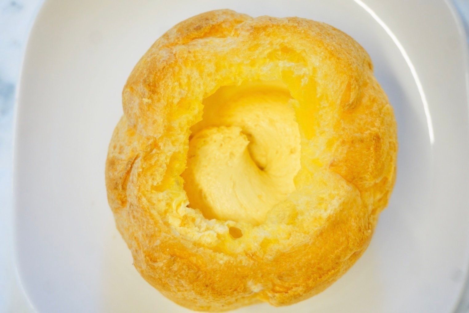 シュークリームの上部分がないのってほとんど見たことがないので、新鮮です。