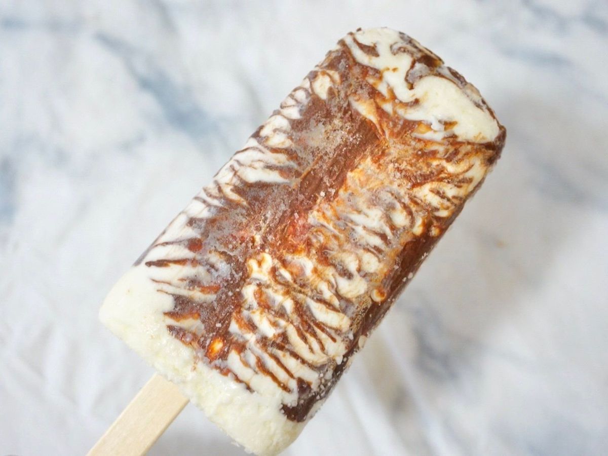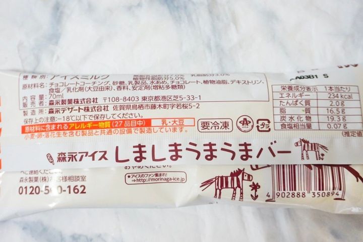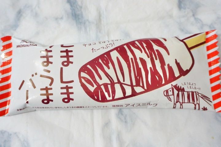 パリパリッとした食感のチョコレートと、バニラアイスを組み合わせた、しまうま模様が特徴のアイスバーです。