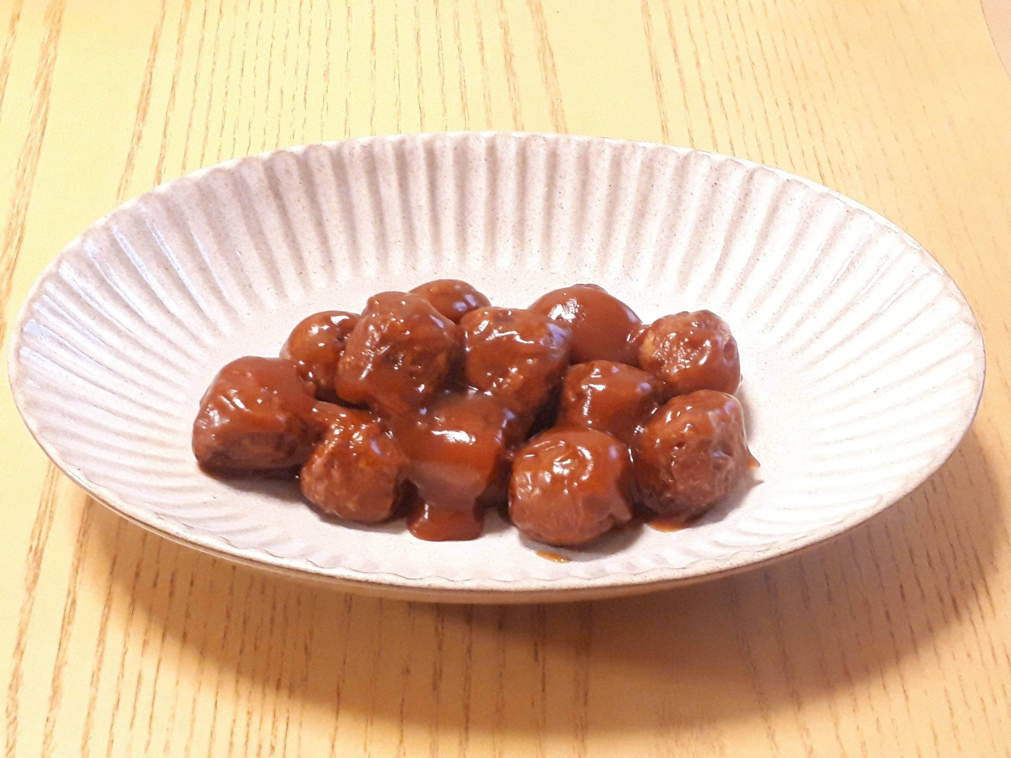 一方、業務スーパーの人気商品「肉だんご」は、500g入って160円なので、若干ですがミートボールのほうがお安くなっています。ミートボールも肉だんごと同じく、国産の鶏肉使用で国内製造の商品です(製造業者は異なっています)。