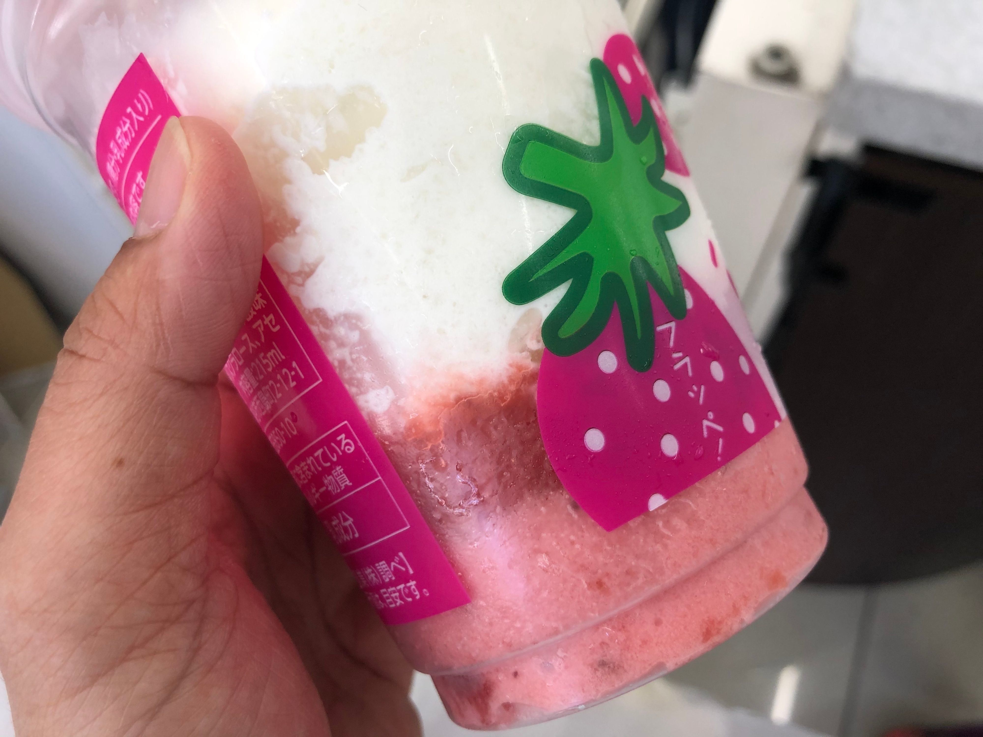 せっかく3層になっているので、混ぜる前に少し飲んでみましたが、いちご果肉がごろっと。いちご感がすごいです!全部混ぜるとあまーいいちごミルクの懐かしい味わいに変身。